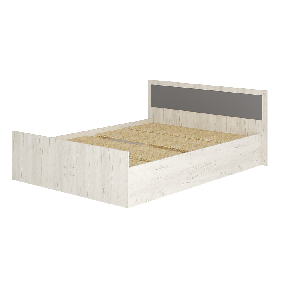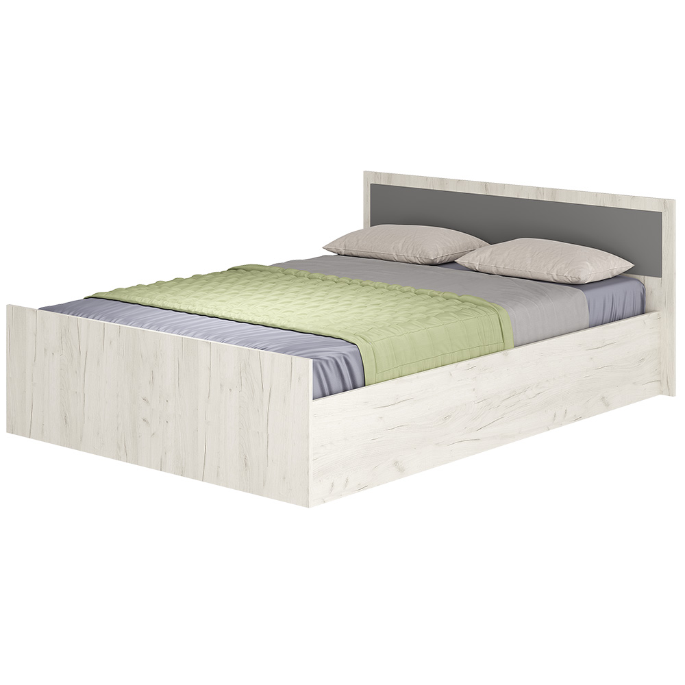 Двуспальная кровать Фиеста выполнена из высококачественной ЛДСП в декоре "дуб крафт белый". Изголовье - ЛДСП цвета графит 16 мм. Отсутствие ножек избавит вас от скопления пыли под кроватью.