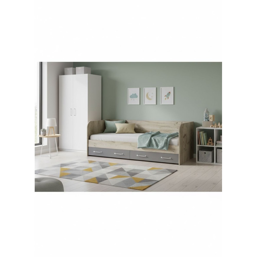 Кровать Колибри выполнена в современном стиле, который подойдёт для любого интерьера детской. Модель комплектуется тремя вместительными ящиками, в которых вы можете разместить игрушки, постельное белье и даже одежду ребенка. На фасадах ящиков отсутствует лицевая фурнитура для большей безопасности детей.