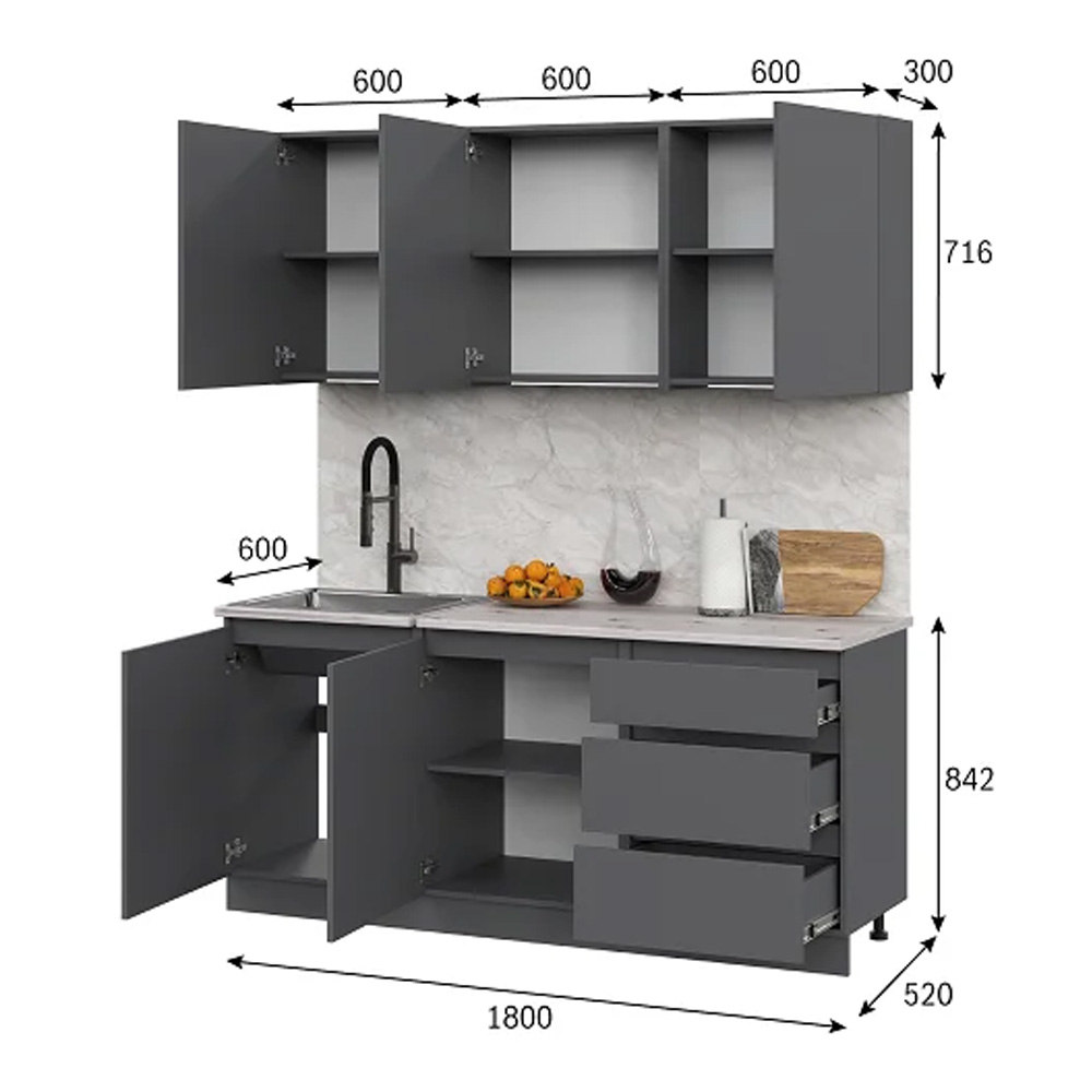 Кухонный гарнитур Айден — практичный комплект из ЛДСП длиной 1,8 метра в современном стиле.