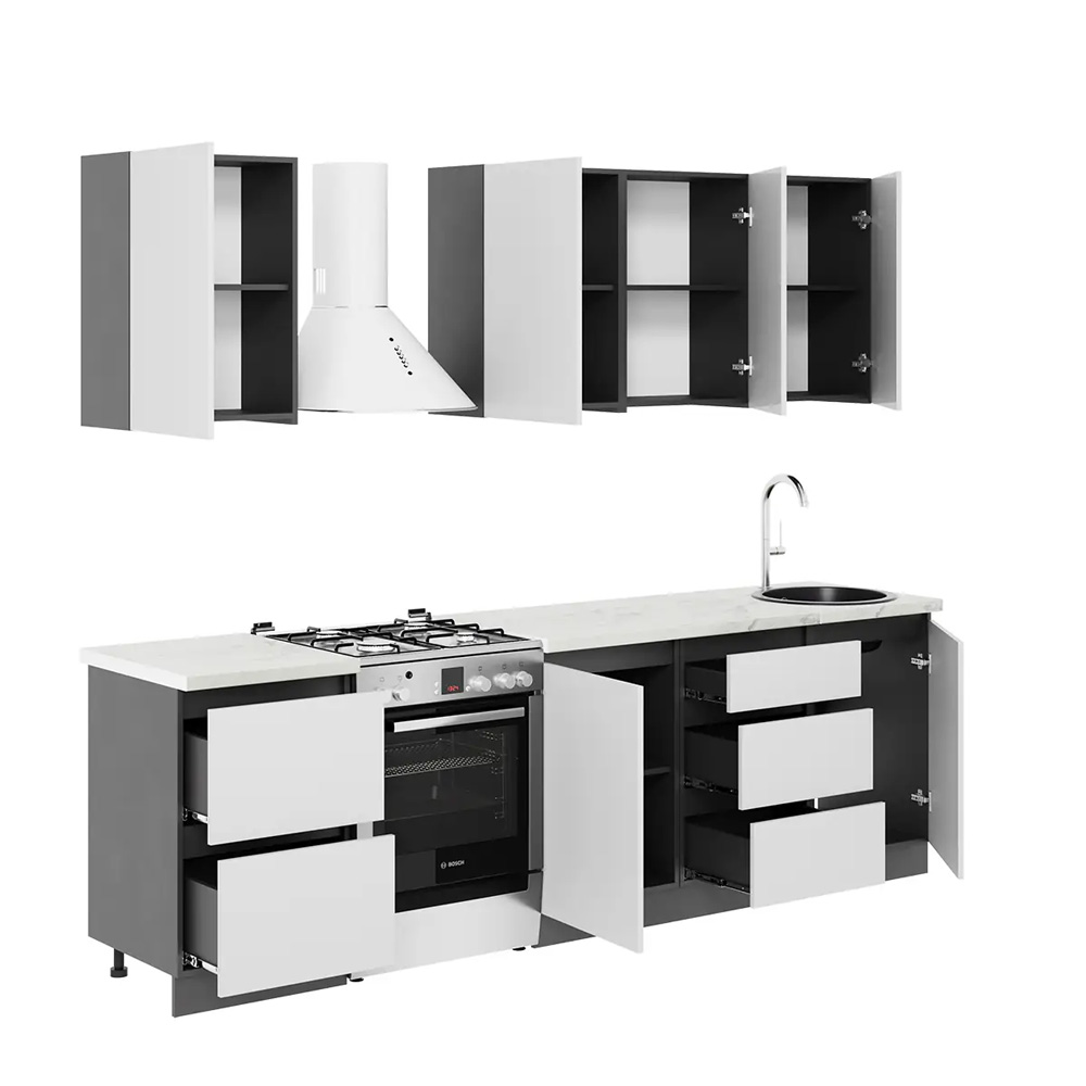 Кухонный гарнитур Айден — практичный комплект из ЛДСП длиной 2,0 метра в современном стиле.