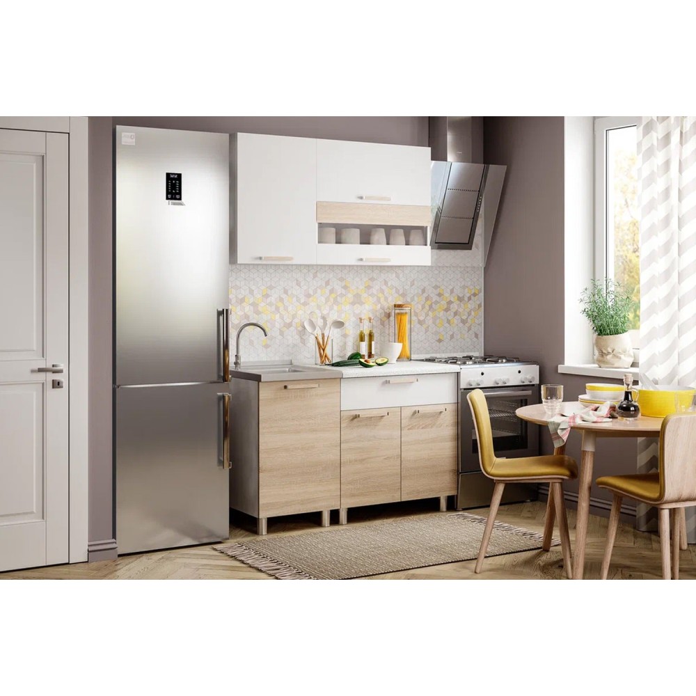 Стильная современная кухня "Айсбери" 1,2 м пропитана атмосферой душевного тепла и солнечного света. Классическое сочетание белого цвета с древесной фактурой - лучшее решение для Вашей кухни!