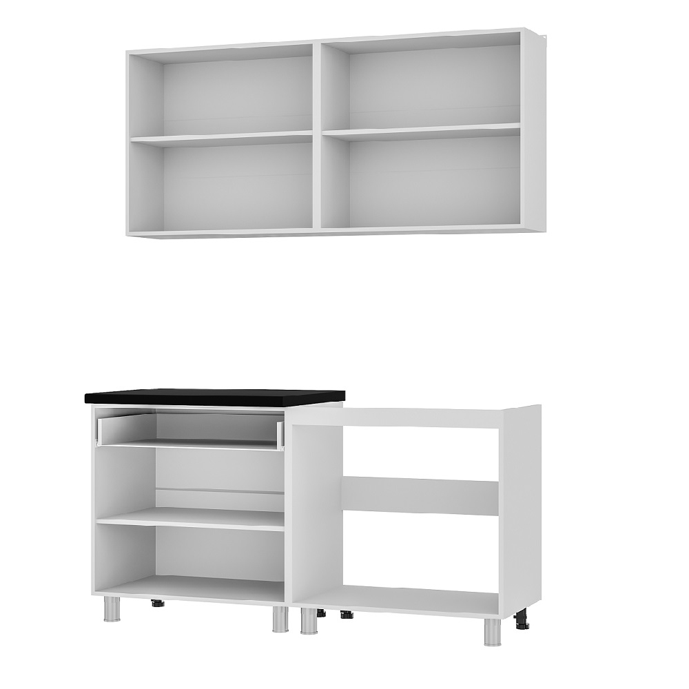 Готовое решение Крафт представлено корпусом в белом исполнении. Верхние стеклостворки фасадов украшены прозрачным стеклом в черной декоративной рамке, нанесенной при помощи фотопечати.