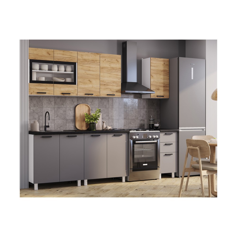 Кухня «Крафт», выполненная в стиле «лофт», - это воплощение самых актуальных трендов в дизайне мебели. Глубокий и насыщенный «графит» для нижней секции и «крафт» для верхней идеально дополняют друг друга, создавая элегантный и сдержанный образ кухни.