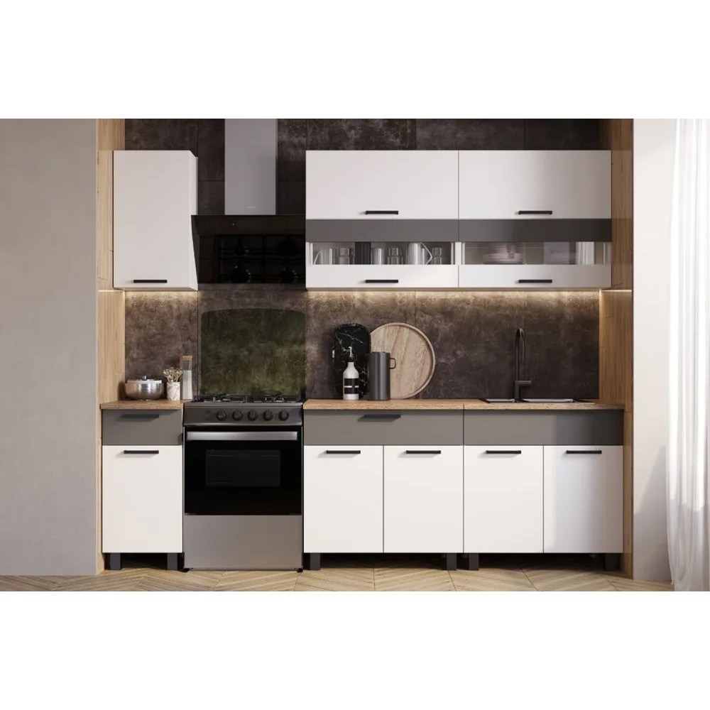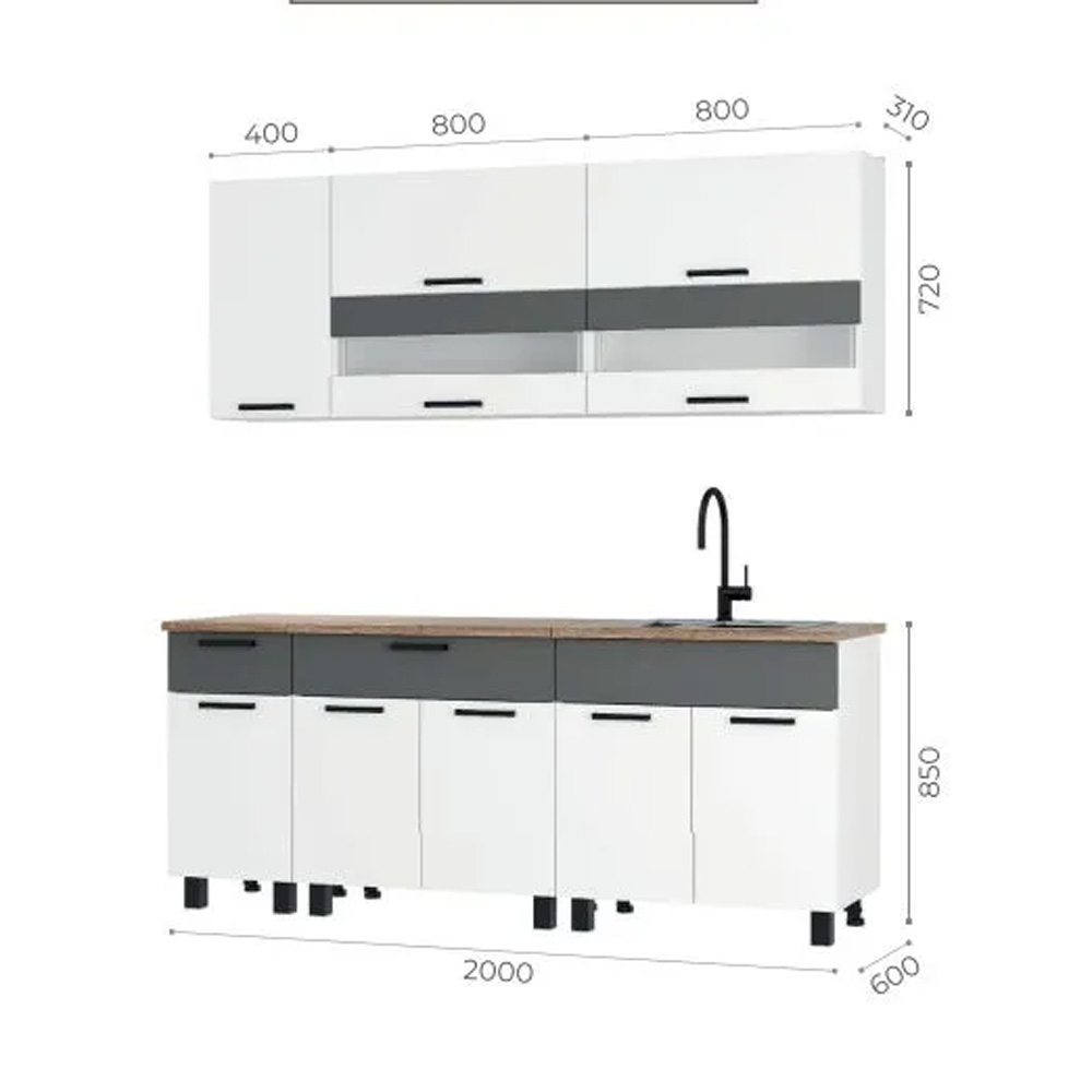 Кухня «Монтана» 2,0 м - это контрастное сочетание цветов, современный дизайн, функциональность и высокое качество материалов.