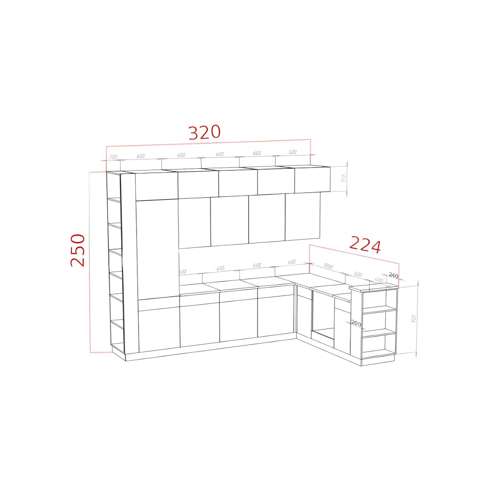 Глубина модулей указана без учёта глубины фасадов (1.6 см).