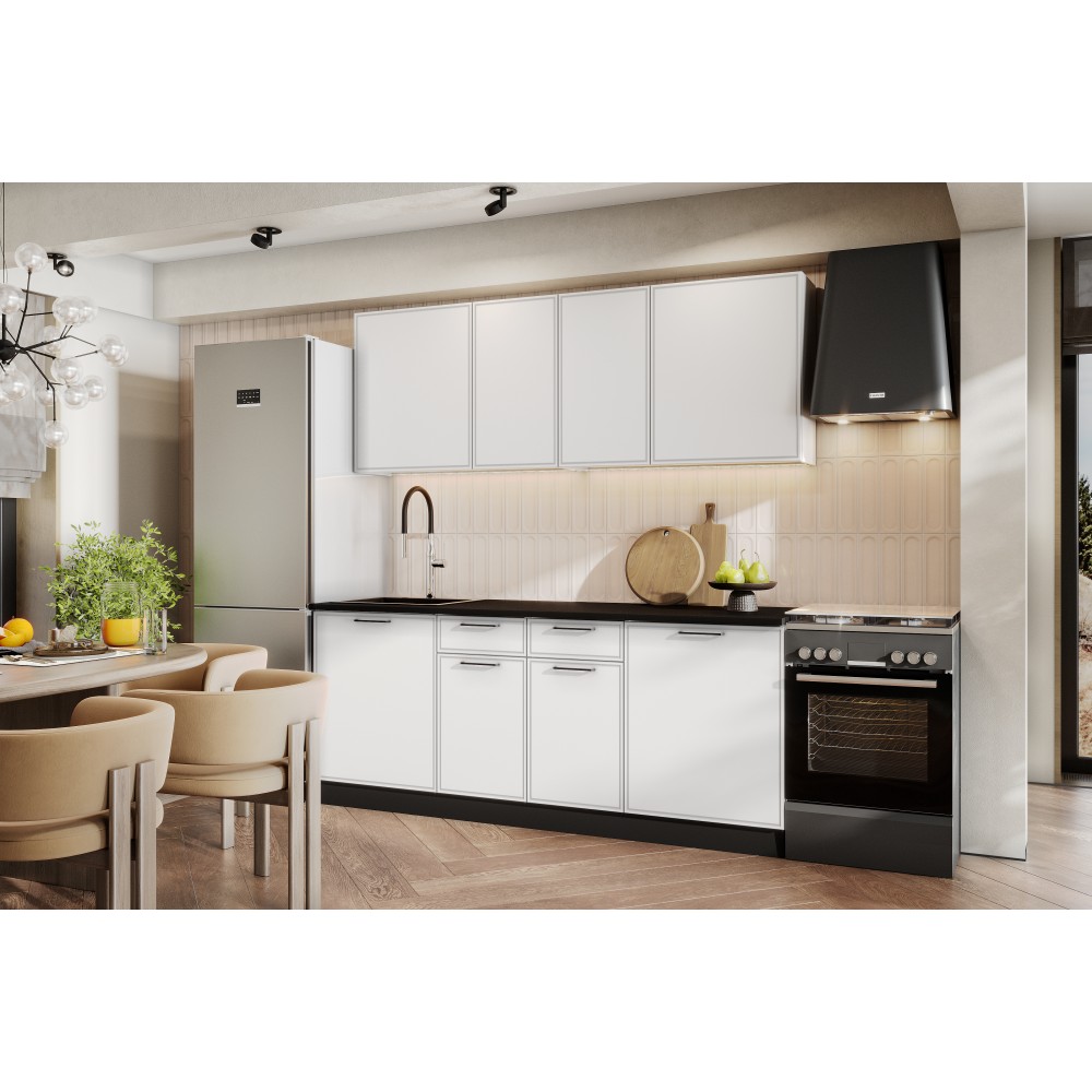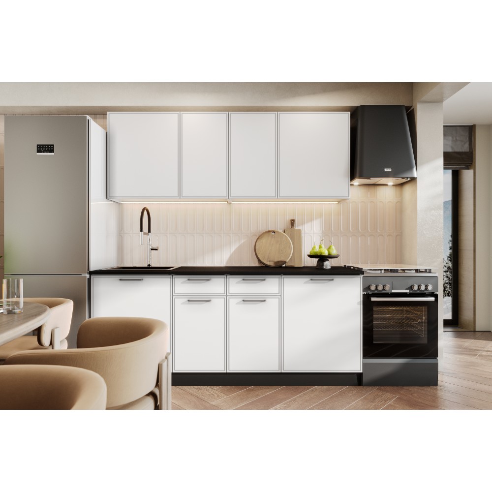 Кухонный гарнитур "Арнуво" 200 см — практичное решение для современной кухни. Комплект включает верхние и нижние шкафы со столешницей, обеспечивая удобную организацию хранения кухонной посуды, продуктов и аксессуаров. Продуманная конструкция модулей, вместительные ящики и стандартные размеры делают гарнитур удобным для ежедневного использования и легким для размещения в большинстве кухонных помещений.