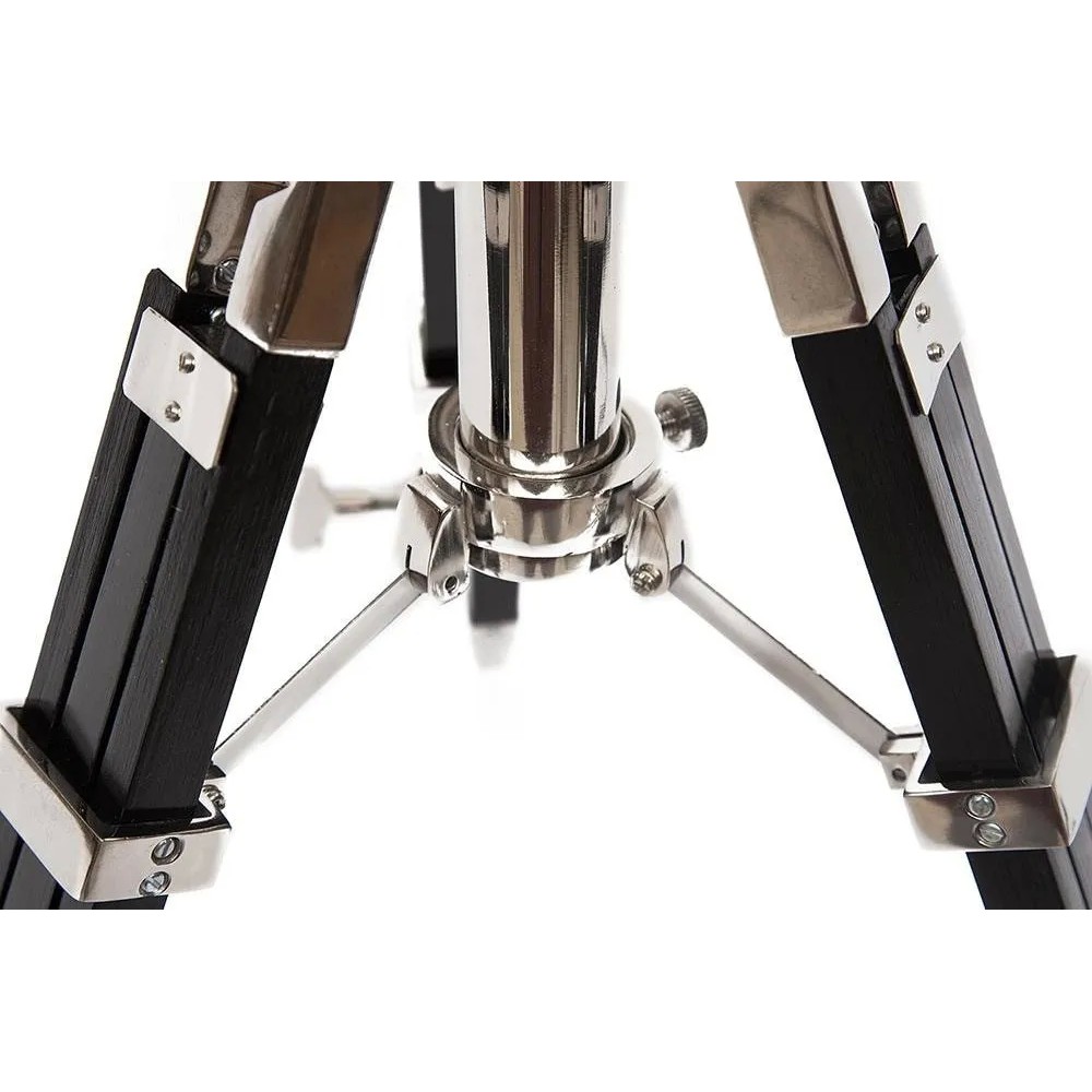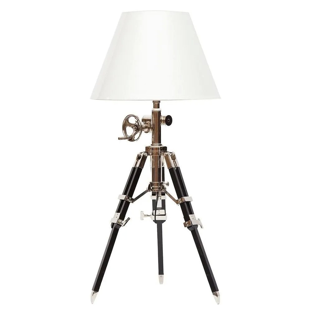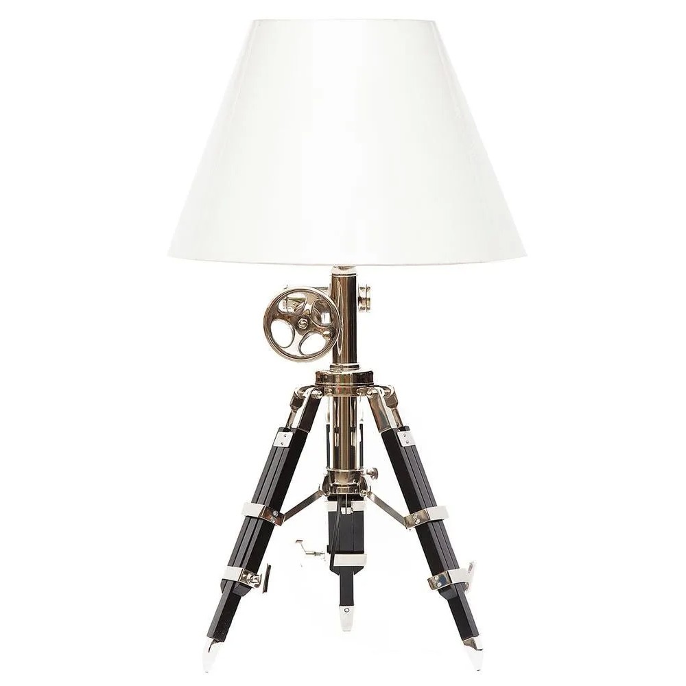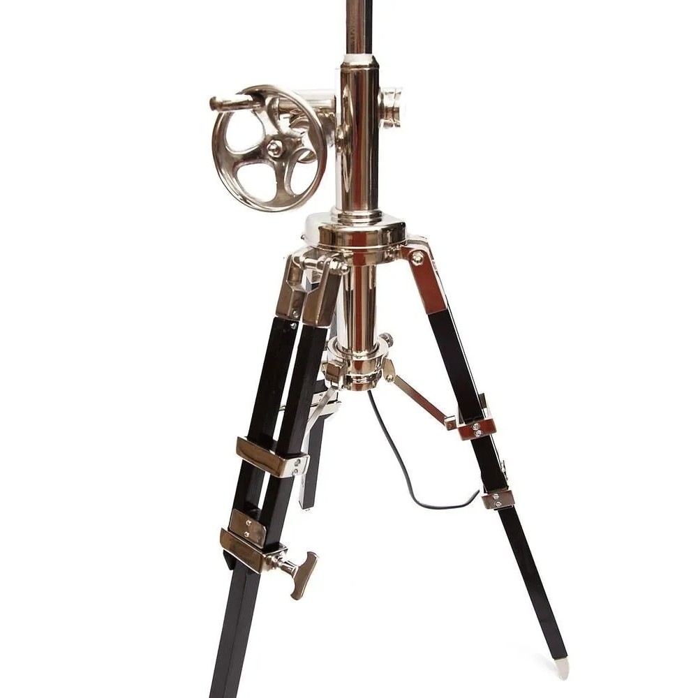 Тренога раздвижная - регулируется по высоте (ручная червячная регулировка высоты штока абажура). Цоколь - Е27. Материал: палисандр+латунь+алюминий. Цвет: коричневый+античная медь. Размеры: 42х42х81 см