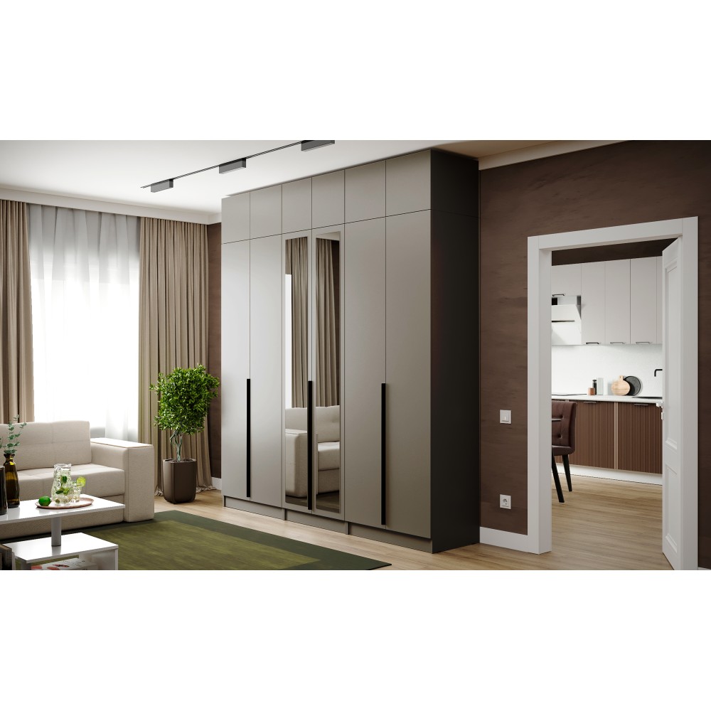 Гардеробная система Мадрид — это универсальное решение для спальни, гостиной и прихожей. Продуманное разноплановое наполнение позволит Вам разместить верхнюю одежду на плечиках на евроштанге, вещи в сложенном виде и аксессуары на полках.