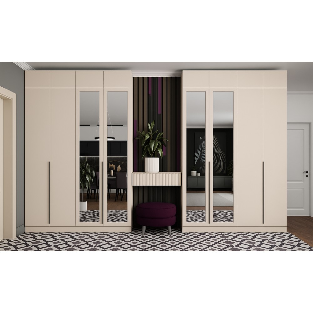 Гардеробная система Мадрид — это универсальное решение для спальни, гостиной и прихожей. Продуманное разноплановое наполнение позволит Вам разместить верхнюю одежду на плечиках на евроштанге, вещи в сложенном виде и аксессуары на полках.
