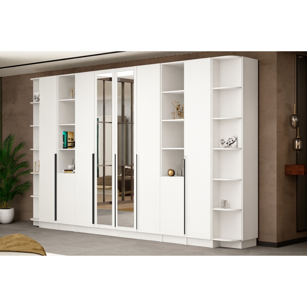 Гардеробная система Мадрид — это универсальное решение для спальни, гостиной и прихожей. Продуманное разноплановое наполнение позволит Вам разместить верхнюю одежду на плечиках на евроштанге, вещи в сложенном виде и аксессуары на полках.