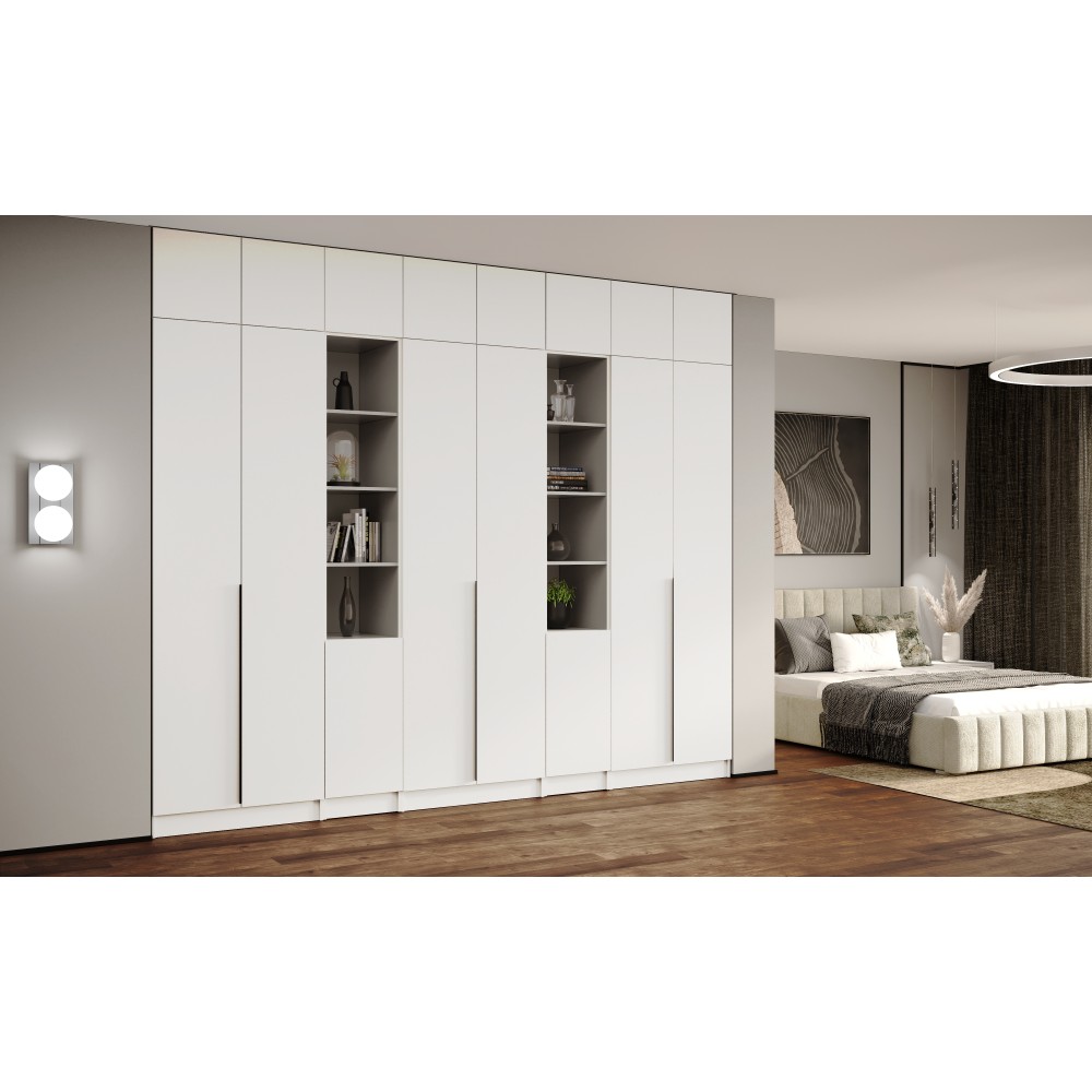 Гардеробная система Мадрид — это универсальное решение для спальни, гостиной и прихожей. Продуманное разноплановое наполнение позволит Вам разместить верхнюю одежду на плечиках на евроштанге, вещи в сложенном виде и аксессуары на полках.