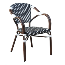 Плетеный стул на прочном стальном каркасе, выполненный из искусственного ротанга темно-серого цвета. Стул имеет подлокотники и удобную высокую спинку. Подойдет для использования в кафе, ресторане и загородном доме...