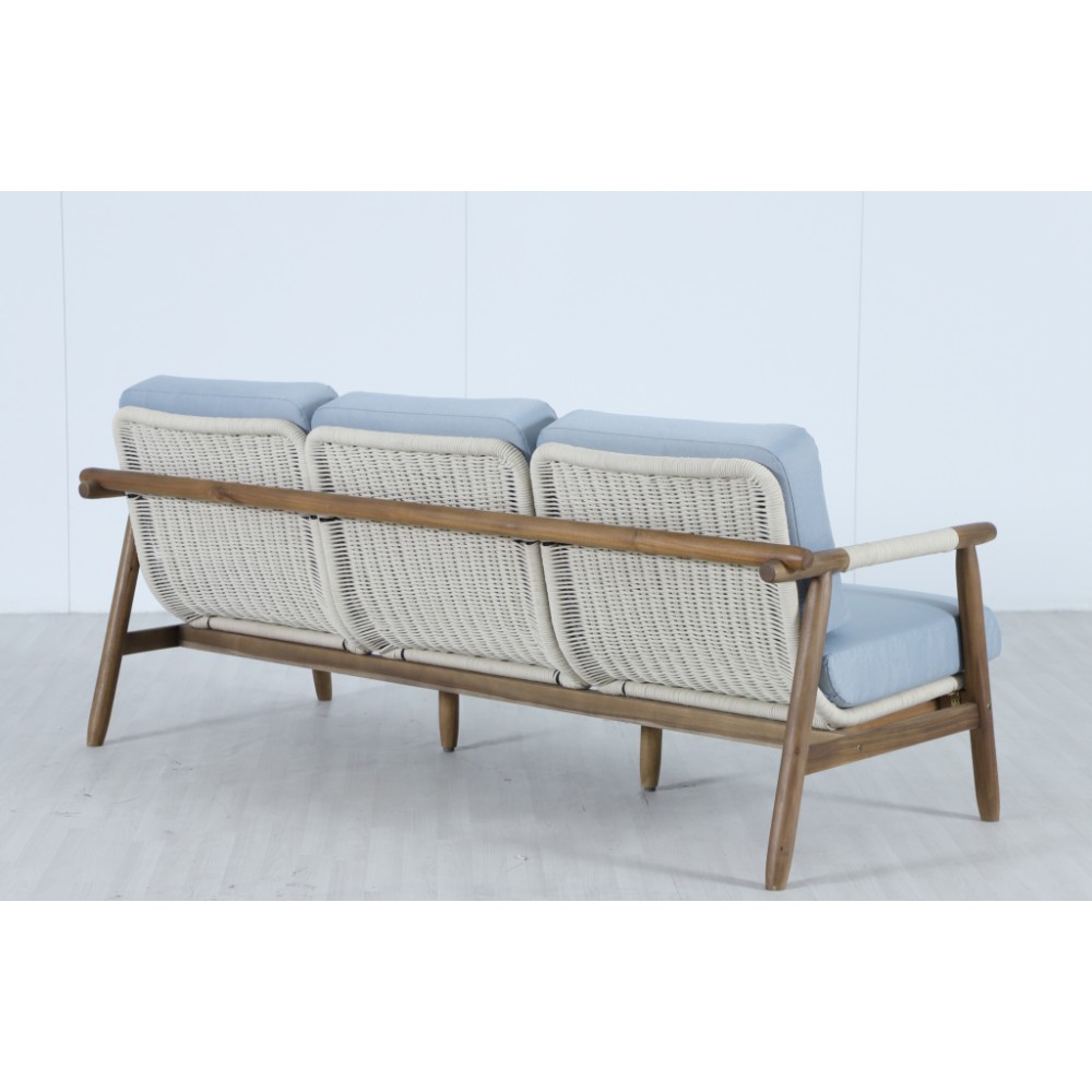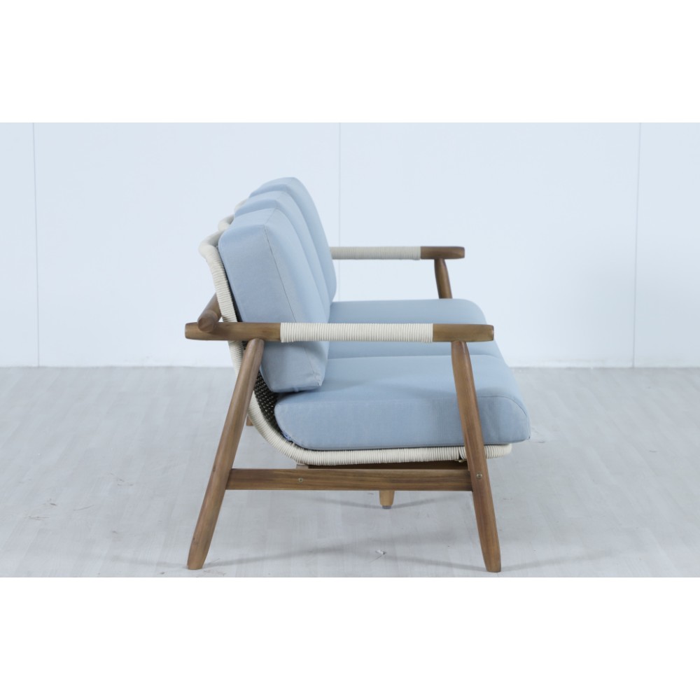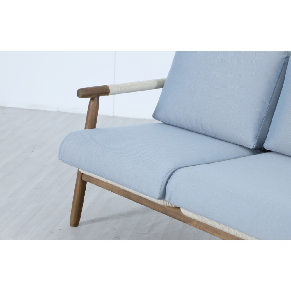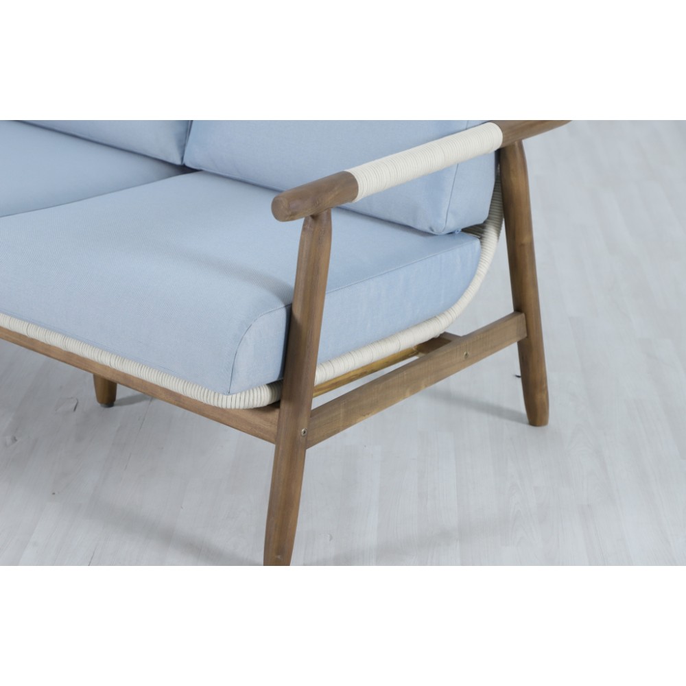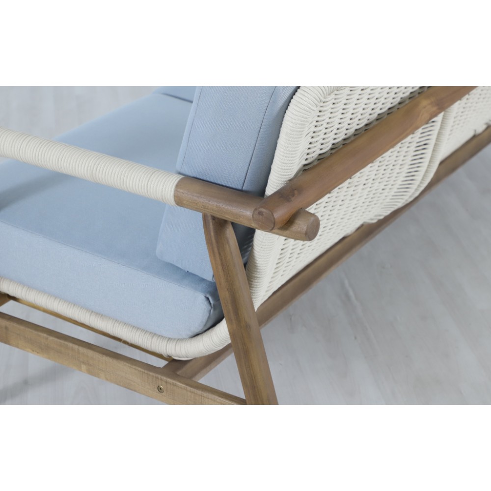 Apoyo - это стильная коллекция уличной мебели из массива АКАЦИИ, в которой сочетаются натуральное верёвочное (роуп) плетение, тёплая текстура дерева и комфортные подушки. Превосходноерешение для террасы или веранды, подходящее для тех, кто ценит долговечность и эстетический вид уличной мебели Особенности: Материал - АКАЦИЯ, отделка экомаслом грецкий орех(TPW #4). Веревочное плетение роуп VPR - PR388на спинке,сиденье и подлокотниках излучает стиль в сочетании с деревянными поверхностями. Древесина, из которой изготовлена мебель, имеет сертификацию FSC (Forest Stewardship Council) - гарантия качества и происхождения древесины. Знак FSC - показатель того, что продукция происходит из леса, в котором ведется экологически и социально ответственное лесное хозяйство. Благодаря своей долговечности, прочности и устойчивости к вредителям эта древесина была создана для изготовления садовой мебели. Страна происхождения древесины: Вьетнам, Малайзия. Средняя плотность древесины: 550 кг/м³. Коррозионно-стойкая, анодированная фурнитура из нержавеющей стали. Подушки в комплекте, ткань подушек - олефин, наполнитель - толстый поролон. Материалы устойчивы к УФ-излучению и другим погодным воздействиям. Цвет подушек - голубой W1887-980.