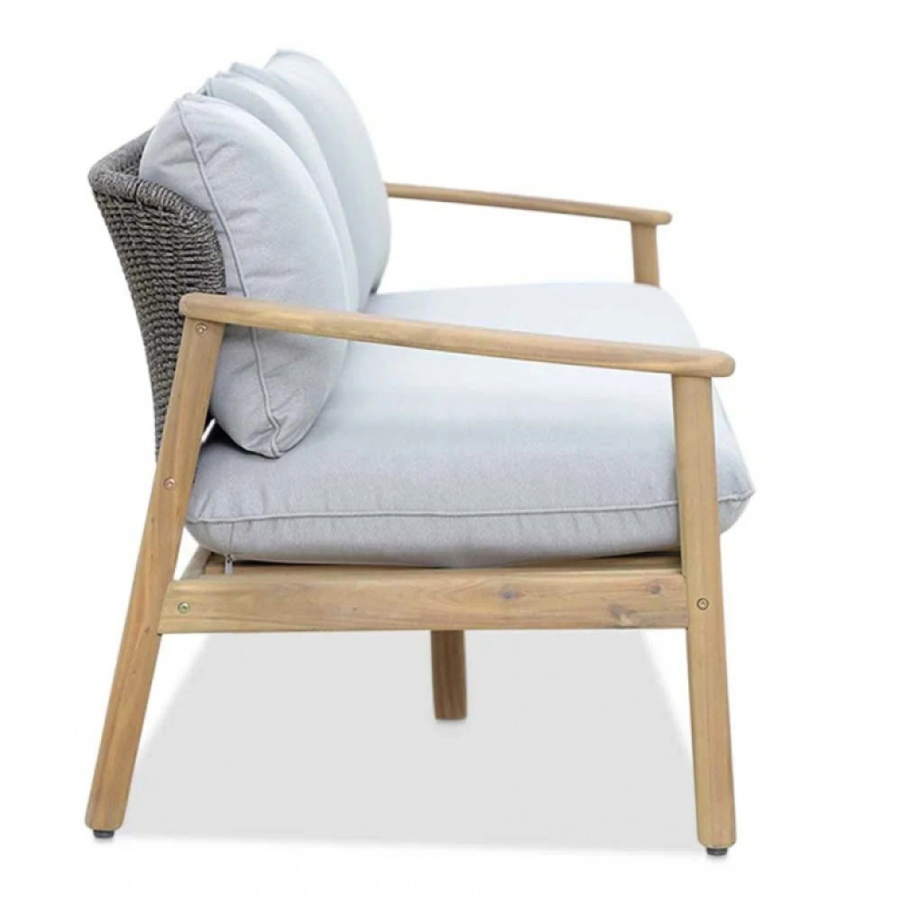 НЕ РЕКОМЕНДУЕТСЯ ДЛЯ КОММЕРЧЕСКОГО ИСПОЛЬЗОВАНИЯ Freeport - это воплощение современного стиля и элегантности для вашего сада. Коллекция, созданная из натуральной акации в сочетании с изысканным веревочным плетением и серыми подушками, привносит уют и роскошь в любое открытое пространство. Просторный трехместный диван - идеальный компаньон для отдыха на свежем воздухе. Прочный деревянный каркас обеспечивает надежность и долговечность, а модный дизайн подчеркивает вкус и статус владельца. Freeport - это комфорт, стиль и природная эстетика на вашей веранде. Особенности: Материал - АКАЦИЯ, отделка песочный (Rose Grey). Веревочное плетение роуп PE 420 толщиной 6 мм на спинке излучает стиль в сочетании с деревянными поверхностями. Древесина, из которой изготовлена мебель, имеет сертификацию FSC (Forest Stewardship Council) - гарантия качества и происхождения древесины. Знак FSC - показатель того, что продукция происходит из леса, в котором ведется экологически и социально ответственное лесное хозяйство. Благодаря своей долговечности, прочности и устойчивости к вредителям эта древесина была создана для изготовления садовой мебели. Страна происхождения древесины: Вьетнам, Малайзия. Средняя плотность древесины: 550 кг/м3. Подушки в комплекте, плотность ткани 260 г/м2. Материалы устойчивы к УФ-излучению и другим погодным воздействиям. Цвет подушек - серый CD 527. Открыть инструкцию по уходу. Вся деревянная мебель должна обрабатываться специальным маслом или пропиткой минимум 1 раз в 6 месяцев (в условиях высокой влажности обработку следует проводить чаще). Для данной мебели не рекомендуются резкие температурные перепады. Мебель из дерева акации должна использоваться только под навесом. Дерево является натуральным материалом, поэтому любые трещины, неравномерные природные рисунки, различность оттенков ‐ являются естественным процессом, который вызван температурными изменениями или влажностью.