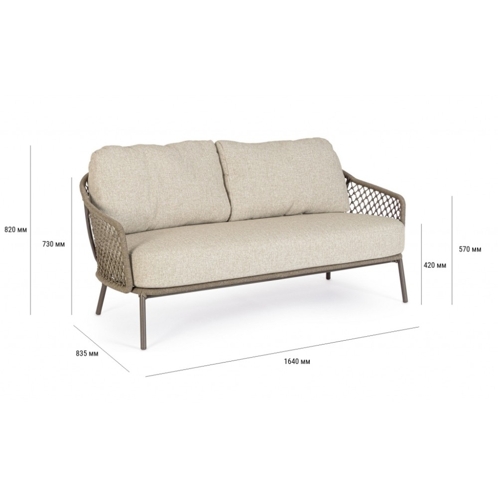Минимальный заказ данной модели 1 шт. Диван Corbeta - это современный предмет мебели интересной формы и прииятного цвета, благодаря которому он оживит любое пространство, в котором находится. Диван привлекает внимание и станет прекрасным дополнением гостиной зоны на открытом пространстве. Он изготовлен из стали и имеет мягкие подушки на сиденье и спинке. Подлокотники и продуманная конструкция гарантируют комфорт во время использования. Плетеный корпус придает дивану удивительный характер. Ножки обеспечивают хорошую устойчивость. Особенности: Каркас выполнен из нержавеющей стали AISI 201. Плетение для наружного использования выполнено из веревки (полипропилен). Съемные подушки из водоотталкивающей, устойчивой к солнцу олефиновой ткани (100% полипропилен). Во избежание коррозии не рекомендуется размещать мебель с конструкцией из нержавеющей стали 201 в местах с повышенной соленостью воды (морская среда). Открыть инструкцию по использованию и уходу Для уточнения всех возможных вариантов материала и цвета данного изделия обращайтесь к нашим менеджерам.