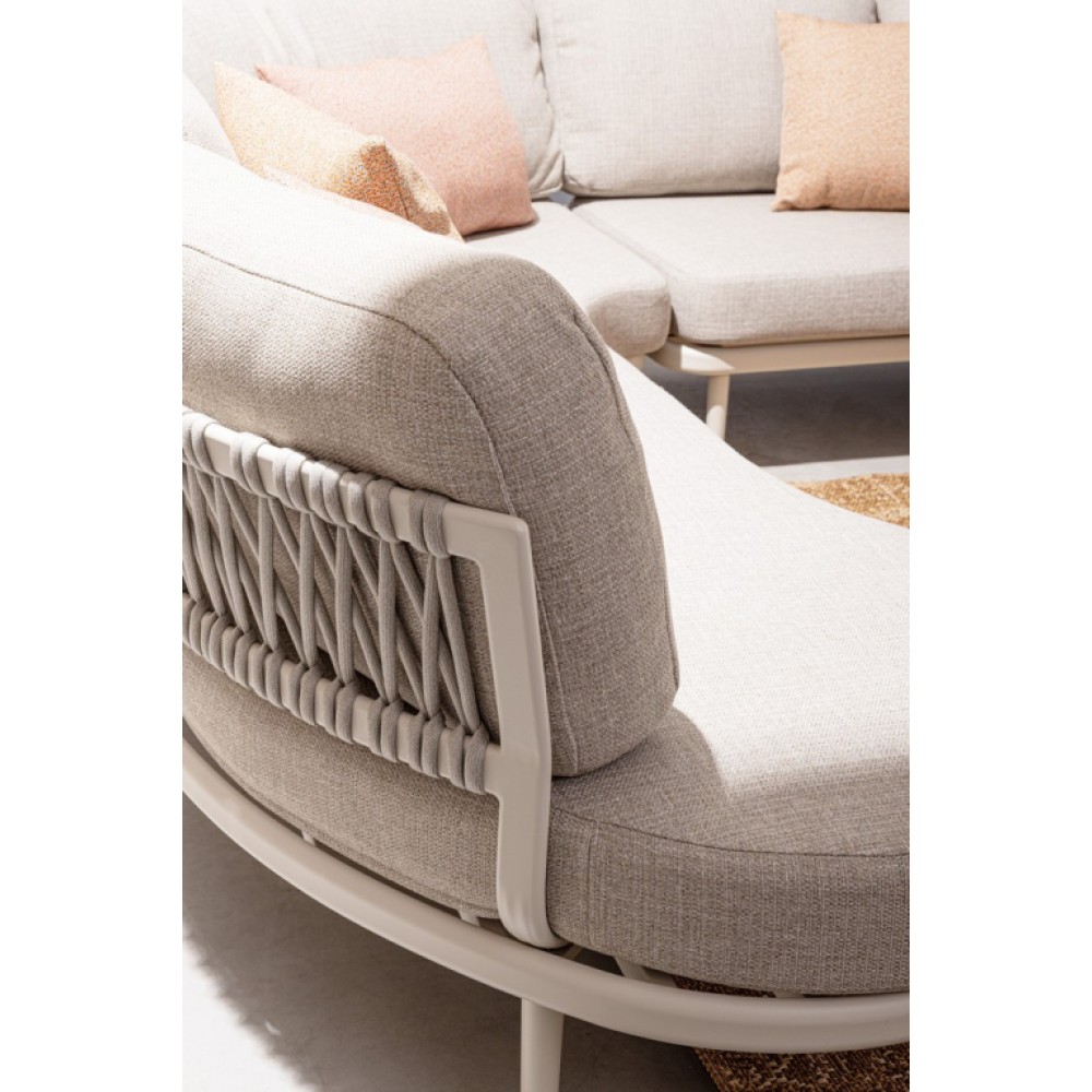 Минимальный заказ данной модели 1 шт. Модульный угловой диван Helios прекрасно подойдет для создания комфортной зоны отдыха на террасе, в саду или на патио. Элегантныйи функциональный он выполнен из качественных материалов - алюминия, роупа и олефина, что обеспечивает прекрасный внешний вид и долговечность. Идеально подходит как для частного использования, так и для коммерческих проектов: ресторанов, отелей, лобби и курортных зон. Особенности: Каркас выполнениз алюминия с порошковым покрытием (полиэстер). Плетение для наружного использования выполнено из олефинового каната (роуп). Съемные подушки из водоотталкивающей олефиновой ткани (100% полипропилен). Высота сиденья: 400 мм, высота спинки без подушки: 650 мм. Винты из нержавеющей стали. Ножки подлежат сборке. Состав комплекта: Модуль с подушками, размер: 1510х1030х820 мм - 2 шт. Модуль с подушками угловой, размер: 1340х850х820 мм - 1 шт. Открыть инструкцию по использованию и уходу. Для уточнения всех возможных вариантов материала и цвета данного изделия обращайтесь к нашим менеджерам.