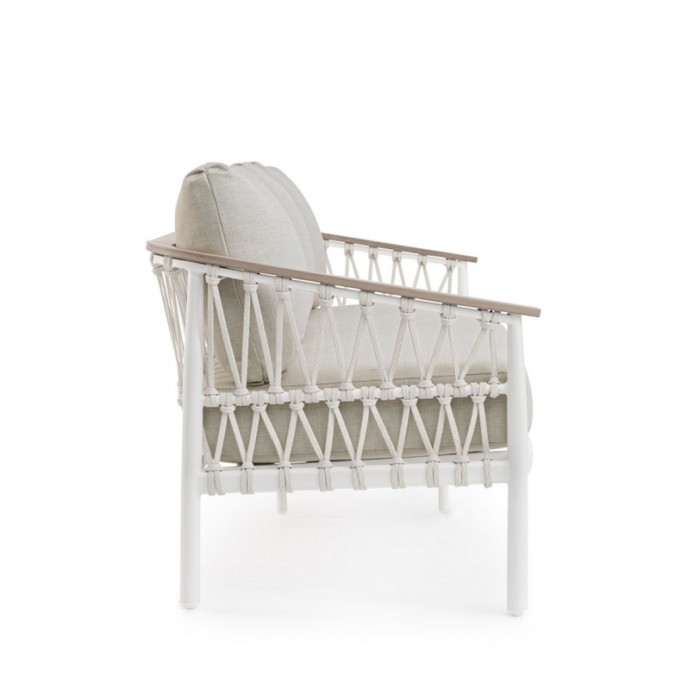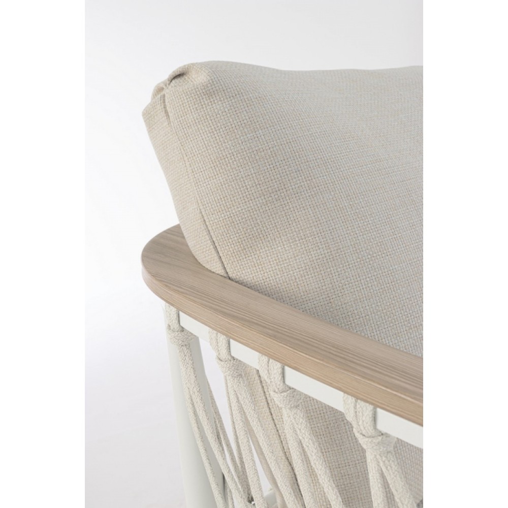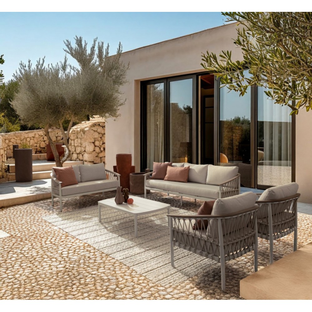 Минимальный заказ данной модели 1 шт. Элегантный и функциональный диван Fenix - идеальное решение для современного интерьера. Дизайн сочетает в себе прочность, комфорт и стиль, делая этот диван центральным элементом как в гостиной, так и в зоне отдыха на открытом пространстве. Особенности: Каркас выполнен из алюминия с порошковым покрытием из полиэстера. Подлокотники выполнены из алюминия с отделкой "под дерево". Плетение выполнено из текстилена. Съемные подушки выполненыиз водоотталкивающего олефина (100% полипропилен). Регулируемые ножки. Открыть инструкцию по использованию и уходу. Для уточнения всех возможных вариантов материала и цвета данного изделия обращайтесь к нашим менеджерам.