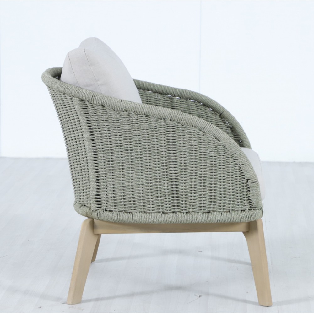 Madrague - это элегантная коллекция уличной мебели из АКАЦИИ, выполненная в комбинацииверевочного плетения роуп, акации и комплектом устойчивых к погоде подушек. Идеальна для террасы, веранды или комфортной зоны на открытом воздухе - сочетает эстетичный внешний вид, прочность и простой уход. Особенности: Материал - АКАЦИЯ, отделка экомаслом тик Light #01A. Веревочное плетение роупDPC 1783на спинке, сиденье и подлокотниках излучает стиль в сочетании с деревянными поверхностями. Древесина, из которой изготовлена мебель, имеет сертификацию FSC (Forest Stewardship Council) - гарантия качества и происхождения древесины. Знак FSC - показатель того, что продукция происходит из леса, в котором ведется экологически и социально ответственное лесное хозяйство. Благодаря своей долговечности, прочности и устойчивости к вредителям эта древесина была создана для изготовления садовой мебели. Страна происхождения древесины: Вьетнам, Малайзия. Средняя плотность древесины: 550 кг/м³. Анодированная фурнитура из нержавеющей стали. Подушки в комплекте, ткань подушек - олефин, наполнитель - толстый поролон. Материалы устойчивы к УФ-излучению и другим погодным воздействиям. Цвет подушек - бежевый B103175.