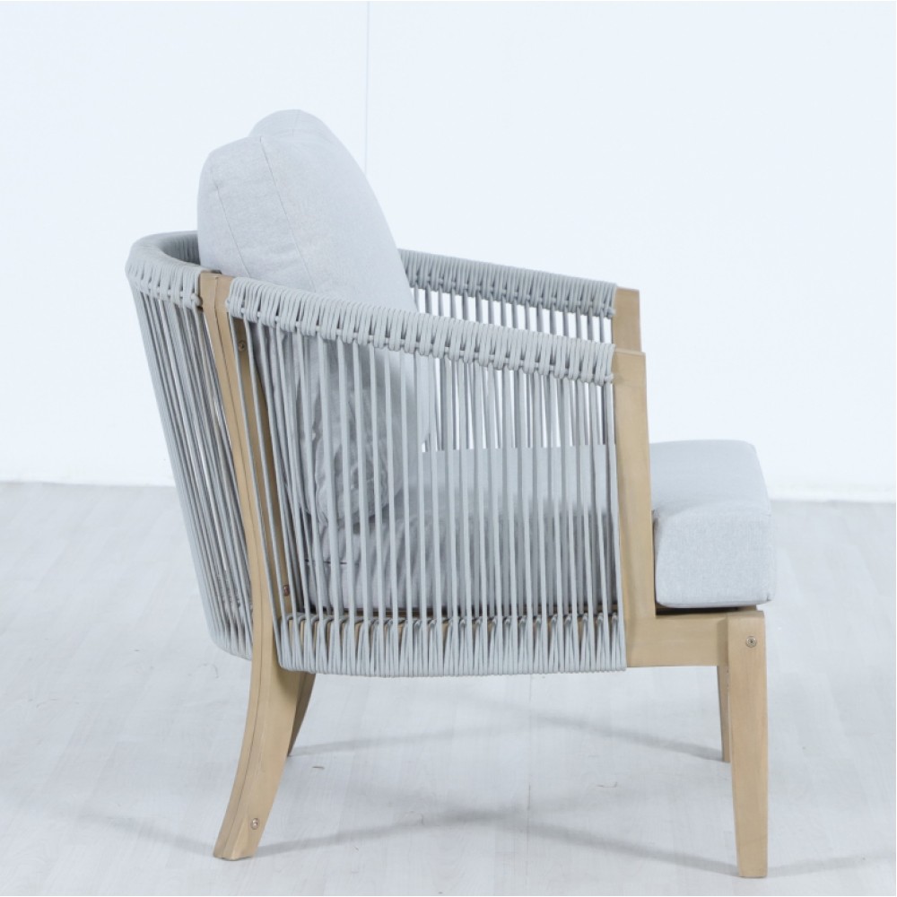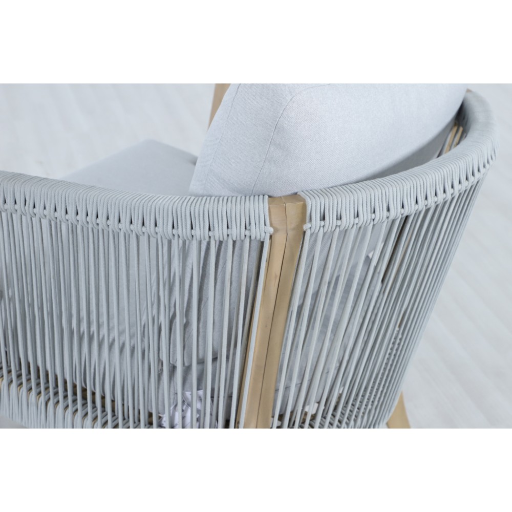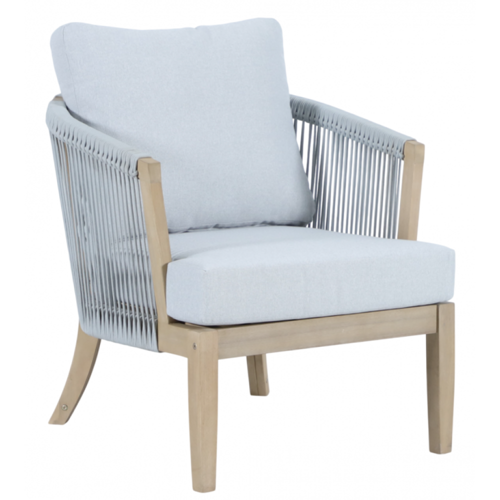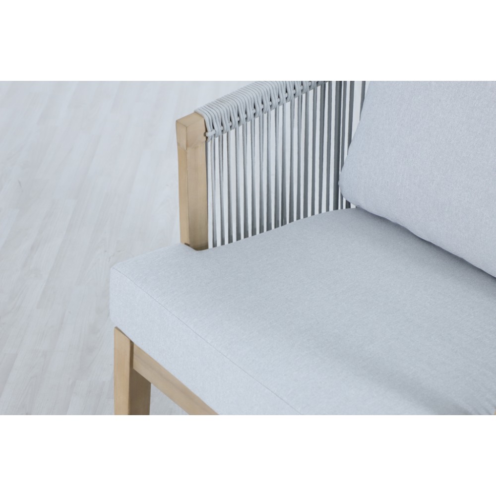 Коллекция Veneto - это линия уличной мебели из АКАЦИИ, объединяющая естественную теплоту дерева и стильные акценты из веревочного плетения роуп. Veneto создаёт цельную атмосферу на террасе, веранде или в зоне у бассейна. Концепция коллекции - эстетика природных материалов, продуманная эргономика и долговечность в условиях открытого воздуха. Особенности: Материал - АКАЦИЯ, отделка экомаслом тик Light #01A. Веревочное плетение роупVPR PR325 толщиной 6 ммна спинке и подлокотниках излучает стиль в сочетании с деревянными поверхностями. Древесина, из которой изготовлена мебель, имеет сертификацию FSC (Forest Stewardship Council) - гарантия качества и происхождения древесины. Знак FSC - показатель того, что продукция происходит из леса, в котором ведется экологически и социально ответственное лесное хозяйство. Благодаря своей долговечности, прочности и устойчивости к вредителям эта древесина была создана для изготовления садовой мебели. Страна происхождения древесины: Вьетнам, Малайзия. Средняя плотность древесины: 550 кг/м³. Анодированная фурнитура из нержавеющей стали. Подушки в комплекте, ткань подушек - олефин, наполнитель - толстый поролон. Материалы устойчивы к УФ-излучению и другим погодным воздействиям. Цвет подушек - светло-серый W1920-776 легко сочетается с любыми ландшафтными решениями.