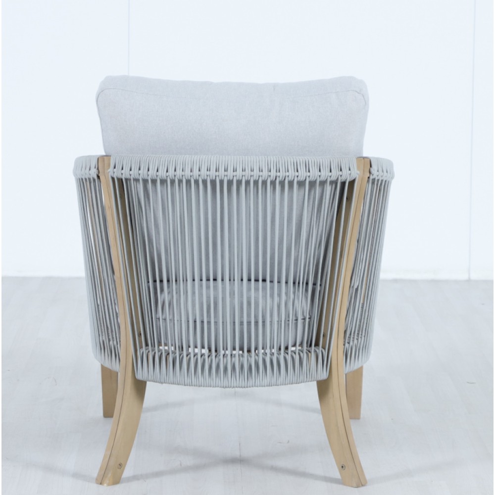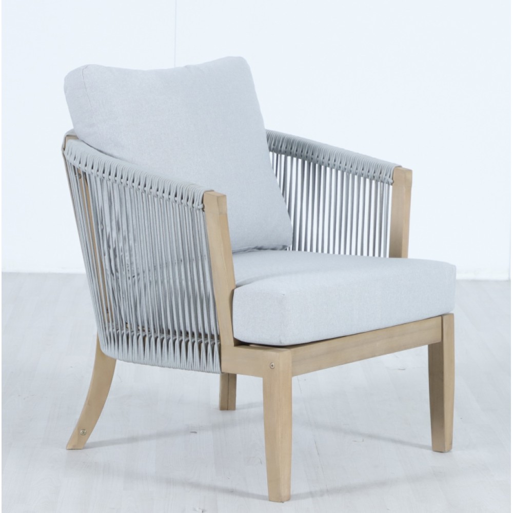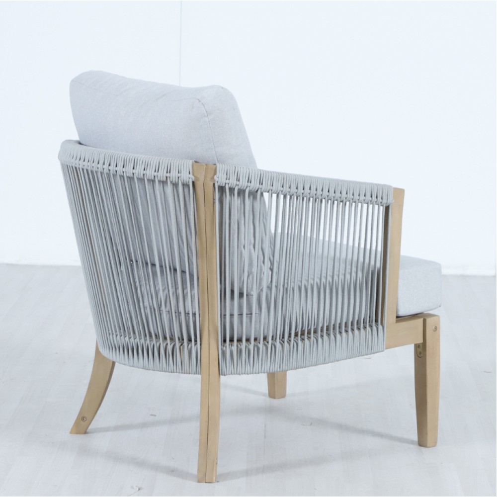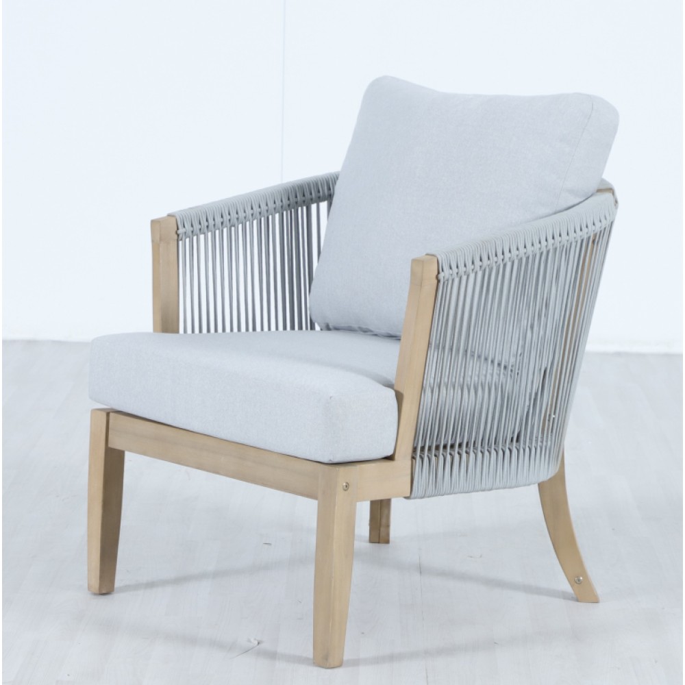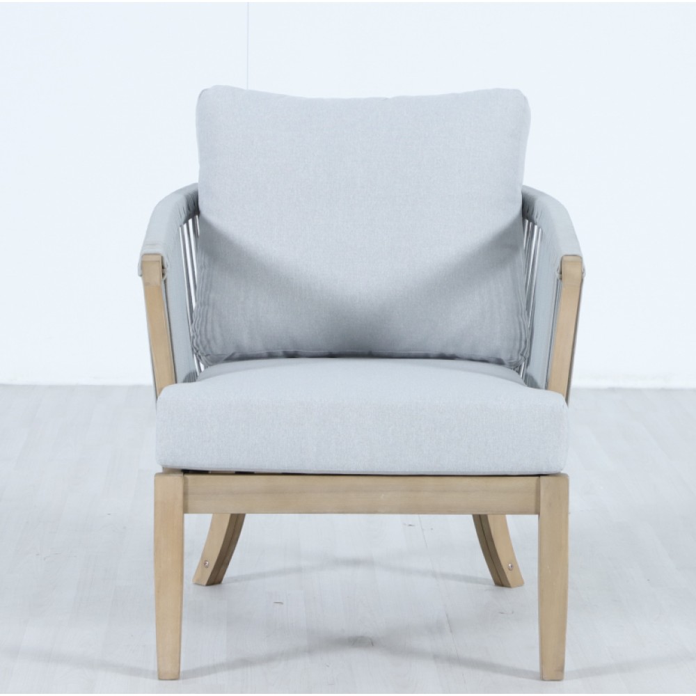 Коллекция Veneto - это линия уличной мебели из АКАЦИИ, объединяющая естественную теплоту дерева и стильные акценты из веревочного плетения роуп. Veneto создаёт цельную атмосферу на террасе, веранде или в зоне у бассейна. Концепция коллекции - эстетика природных материалов, продуманная эргономика и долговечность в условиях открытого воздуха. Особенности: Материал - АКАЦИЯ, отделка экомаслом тик Light #01A. Веревочное плетение роупVPR PR325 толщиной 6 ммна спинке и подлокотниках излучает стиль в сочетании с деревянными поверхностями. Древесина, из которой изготовлена мебель, имеет сертификацию FSC (Forest Stewardship Council) - гарантия качества и происхождения древесины. Знак FSC - показатель того, что продукция происходит из леса, в котором ведется экологически и социально ответственное лесное хозяйство. Благодаря своей долговечности, прочности и устойчивости к вредителям эта древесина была создана для изготовления садовой мебели. Страна происхождения древесины: Вьетнам, Малайзия. Средняя плотность древесины: 550 кг/м³. Анодированная фурнитура из нержавеющей стали. Подушки в комплекте, ткань подушек - олефин, наполнитель - толстый поролон. Материалы устойчивы к УФ-излучению и другим погодным воздействиям. Цвет подушек - светло-серый W1920-776 легко сочетается с любыми ландшафтными решениями.