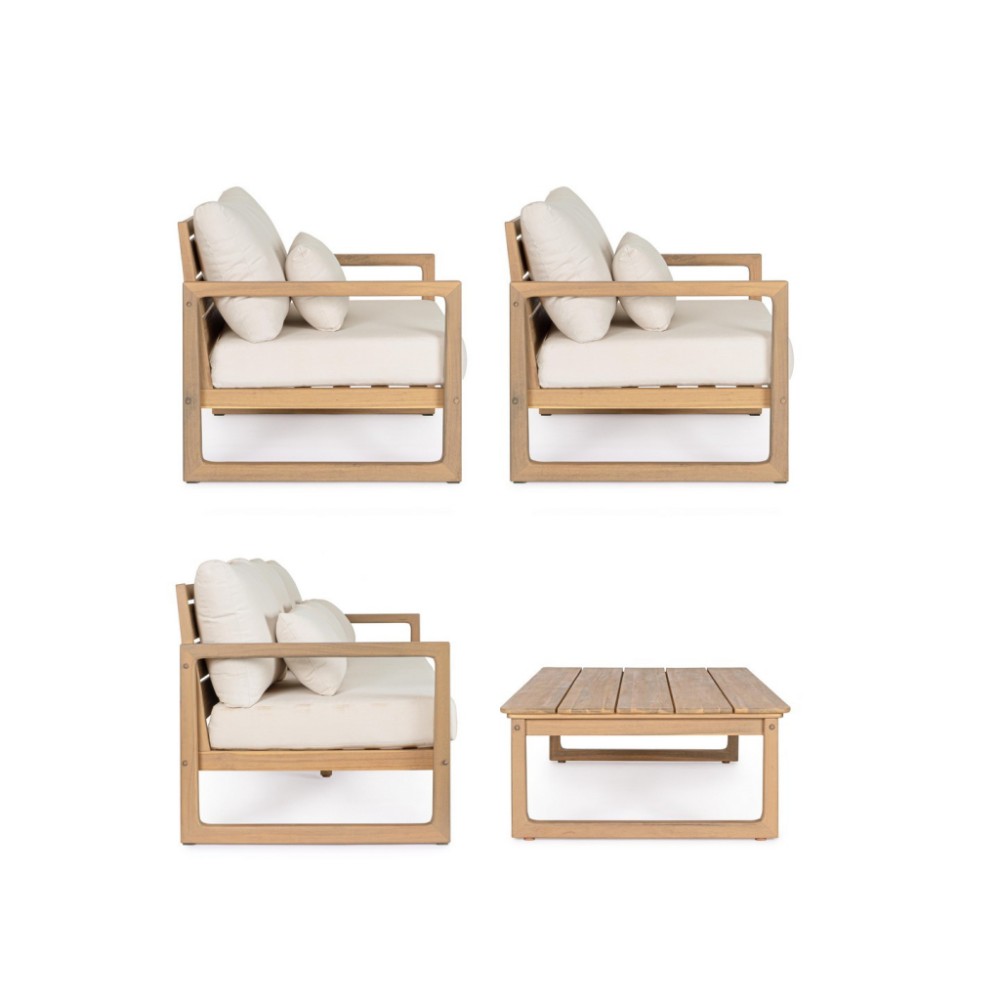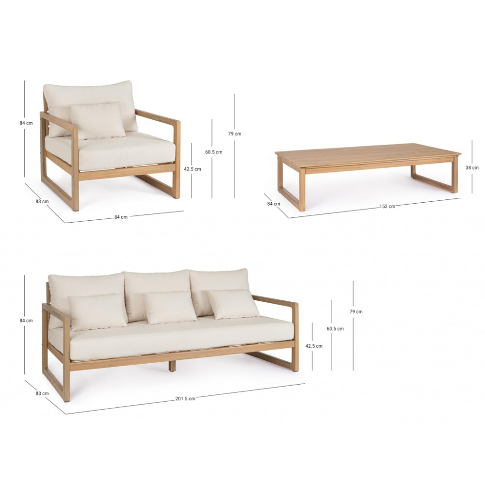 Минимальный заказ данной модели 1 шт. Изделия комплекта предназначены только для домашнего использования. Комплект Adrian предлагает практичное и визуально гармоничное решение для обустройства зон отдыха на террасах, в садах и на патио. Изделия сочетают натуральную древесину акации с современными материалами, обеспечивая долговечность и гармоничный внешний вид. Особенности: Каркас выполнен из акации FSC 100% с отделкой под тик. Съемные чехлы подушек выполнены из Spunpoly (полиэстера230 г/м²). Высота сиденья: 425 мм, высота подлокотников: 605 мм, высота спинки без подушки: 790 мм. Винты выполнены из оцинкованной стали. Столик имеет регулируемые ножки. Состав комплекта: Диван трехместный с подушками, размер: 2015х830х840 мм - 1 шт. Кресло металлическое с подушками, размер: 840х830х840 мм - 2 шт. Столик журнальный металлический, размер: 1520х840х380 мм - 1 шт. Посмотреть инструкцию по сборке. Открыть инструкцию по использованию и уходу.