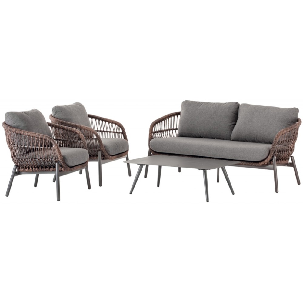Данная продукция возится только под заказ с фабрики по предоплате. КомплектElba- результат сочетания элегантности и простоты, в котором покрытие искусственного ротангавозвращает яркую атмосферу города и сочетается с комфортом мягких подушек. Уличный комплектElbaсостоит издвухместного дивана, двух кресел и журнального столика со столешницей из алюминий. Алюминиевый каркас оплетен искусственным ротангом Wintech, мягкие подушки на сиденьях и спинках со съемными чехлами из олефина,устойчивого к загрязнениям и ультрафиолетовому излучению. Состав комплекта: Диван с подушками, размер: 1800х830х780 мм, высота сиденья: 480 мм, вес: 22 кг - 1 шт. Кресло с подушками, размер: 810х830х780 мм, высота сиденья: 480 мм, вес: 12 кг - 2 шт. Журнальный стол Jolly, размер: 1100х700х350 мм, вес: 9 кг - 1 шт.