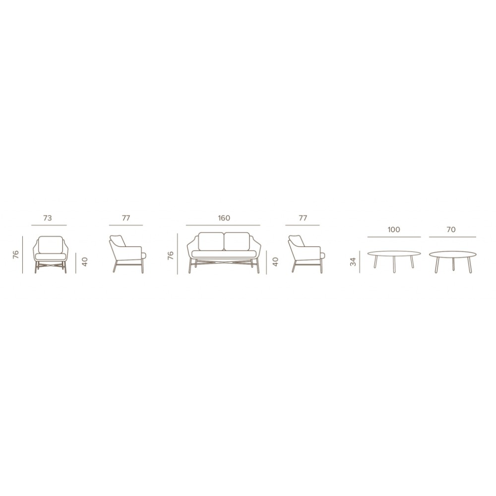 Данная продукция возится только под заказ с фабрики по предоплате. Комплект Panamaсостоит из двухместного дивана, двух кресел и журнального столика. Устойчивый и надежный каркас из алюминия кресел и дивана оплетен текстиленовым и резиновым канатом. Подушки из текстилена обеспечивают дополнительный комфорт. Журнальный столик выполнен из алюминия. Стильный и удобный комплект можно разместить в зоне отдыха в помещении или на открытом воздухе. Комплект лаунж мебели Panama - напоминание о расслабляющей атмосфере карибских пляжей с одной стороны, и невероятных морских волнах - с другой. Модель соединяет два мира: мир отдыха и релаксации с миром бодрствования и веселого настроения. Состав комплекта: Диван с подушками, размер: 1600х770х760 мм, высота сиденья: 400 мм, вес: 23кг - 1 шт. Кресло с подушками, размер: 730х770х760 мм, высота сиденья: 400 мм, вес: 18 кг - 2 шт. Журнальный стол Island, размер: 1000х700х340 мм, вес: 8 кг - 1 шт.