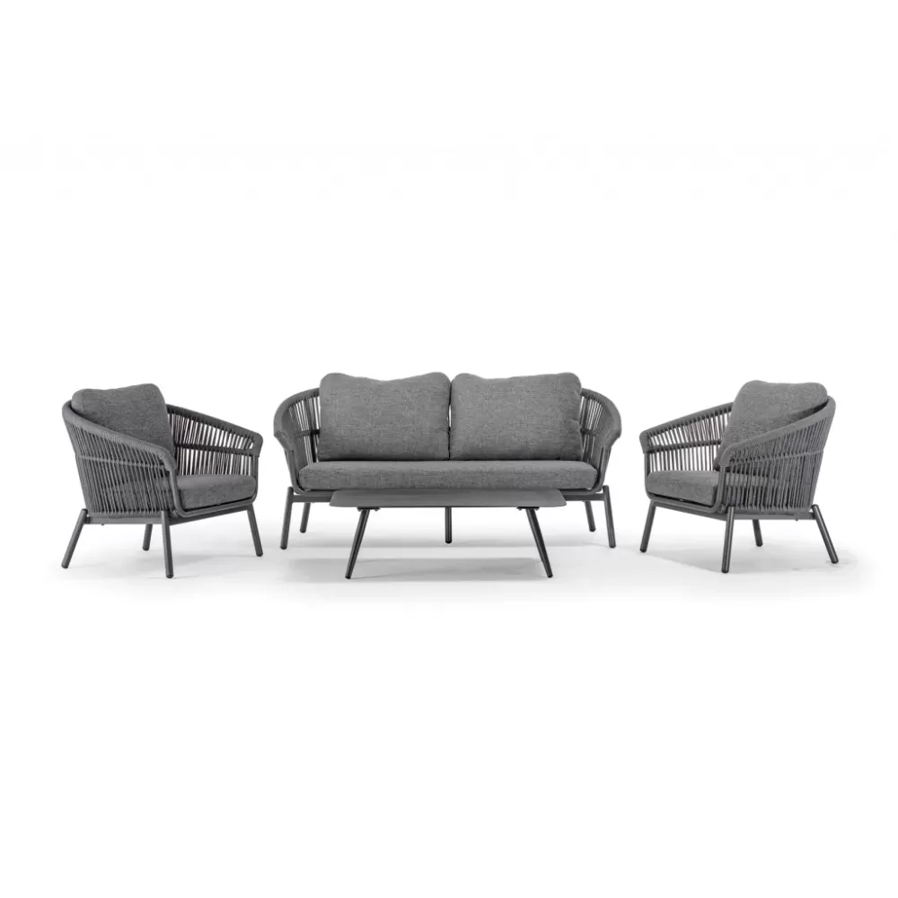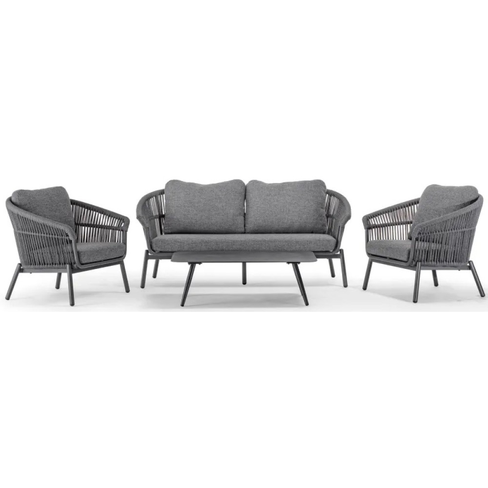 Данная продукция возится только под заказ с фабрики по предоплате. Садовый комплект для отдыха Tropea сочетает в себе современный дизайн, высокий комфорт и долговечность материалов. Он состоит из двух кресел, двухместного дивана и журнального столика с алюминиевой столешницей и идеально подходит для стильных открытых пространств. Алюминиевый каркас обтянут текстильным канатом толщиной 8 мм, а подушки из олефина с быстросохнущим пеноматериалом обеспечивают максимальный комфорт. Особенности: Рама:алюминий. Покрытие роупа:водостойкий текстильный канат диаметром 8 мм. Обивка:съемные подушки из олефиновой водоотталкивающей ткани с быстросохнущей пеной. Столешница столика:алюминий – прочный и легко моется. Комплект идеально подходит для террас, садов и стильных зон отдыха. Садовый гарнитур Tropea - этоидеальный выбор для тех, кто ищет комфортную и эксклюзивную зону отдыха на открытом воздухе. Идеально подходит для долгих часов отдыха под открытым небом. Состав комплекта: Диван с подушками, размер: 1800х820х800мм, высота сиденья: 400 мм, вес: 25 кг - 1 шт. Кресло с подушками, размер: 930х820х800 мм, высота сиденья: 400 мм, вес: 12 кг- 2 шт. Журнальный стол, размер: 1100х700х350мм, вес: 9кг - 1 шт.