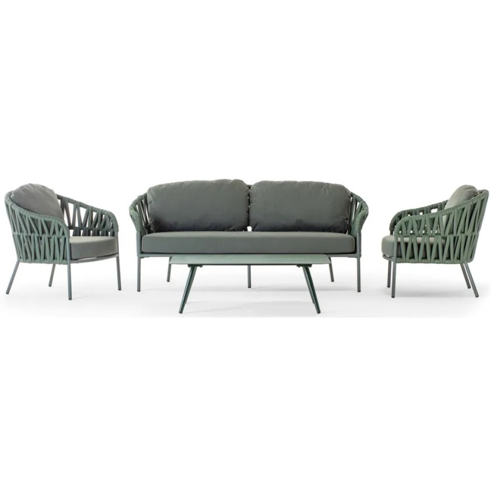 Данная продукция возится только под заказ с фабрики по предоплате. Садовый комплект мебели Victory -это идеальное сочетание современного дизайна, высокого качества изготовления и максимального комфорта. Этот комплект, состоящий из просторного дивана, двух удобных кресел и стильного журнального столика с алюминиевой столешницей, станет роскошным решением для отдыха на открытом воздухе: на террасе, в саду или в гостиной. Прочный алюминиевый каркас обтянут полиэстером и резиновым канатом, а съёмные подушки из олефина с водоотталкивающей пропиткой обеспечат максимальный комфорт. Состав комплекта: Диван с подушками, размер: 1700х780х790мм, высота сиденья: 450 мм, вес: 26 кг - 1 шт. Кресло с подушками, размер: 850х780х790мм, высота сиденья: 450 мм, вес: 12 кг- 2 шт. Журнальный стол, размер: 1100х700х350мм, вес: 9кг - 1 шт.
