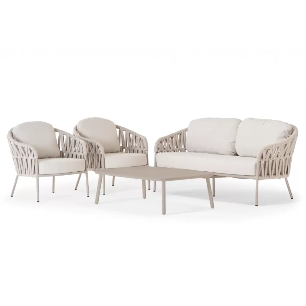 Данная продукция возится только под заказ с фабрики по предоплате. Садовый комплект мебели Victory -это идеальное сочетание современного дизайна, высокого качества изготовления и максимального комфорта. Этот комплект, состоящий из просторного дивана, двух удобных кресел и стильного журнального столика с алюминиевой столешницей, станет роскошным решением для отдыха на открытом воздухе: на террасе, в саду или в гостиной. Прочный алюминиевый каркас обтянут полиэстером и резиновым канатом, а съёмные подушки из олефина с водоотталкивающей пропиткой обеспечат максимальный комфорт. Состав комплекта: Диван с подушками, размер: 1700х780х790мм, высота сиденья: 450 мм, вес: 26 кг - 1 шт. Кресло с подушками, размер: 850х780х790мм, высота сиденья: 450 мм, вес: 12 кг- 2 шт. Журнальный стол, размер: 1100х700х350мм, вес: 9кг - 1 шт.