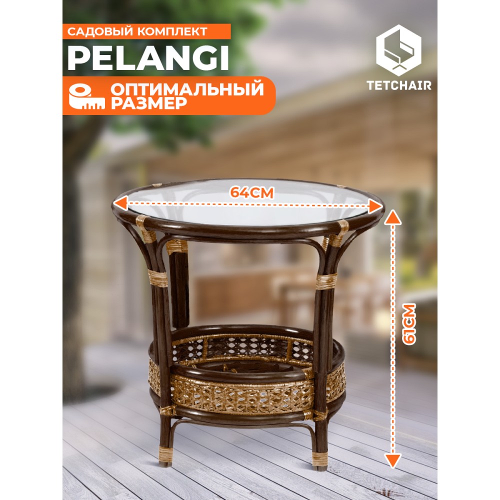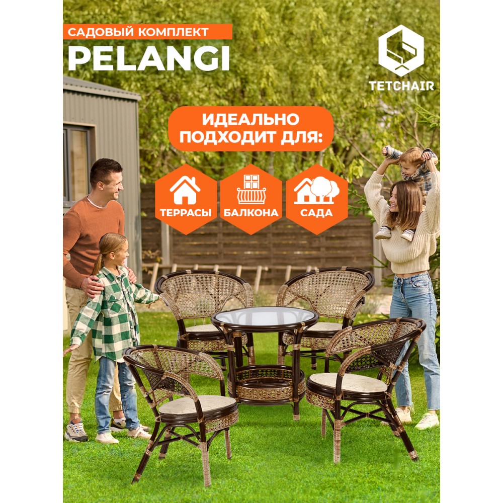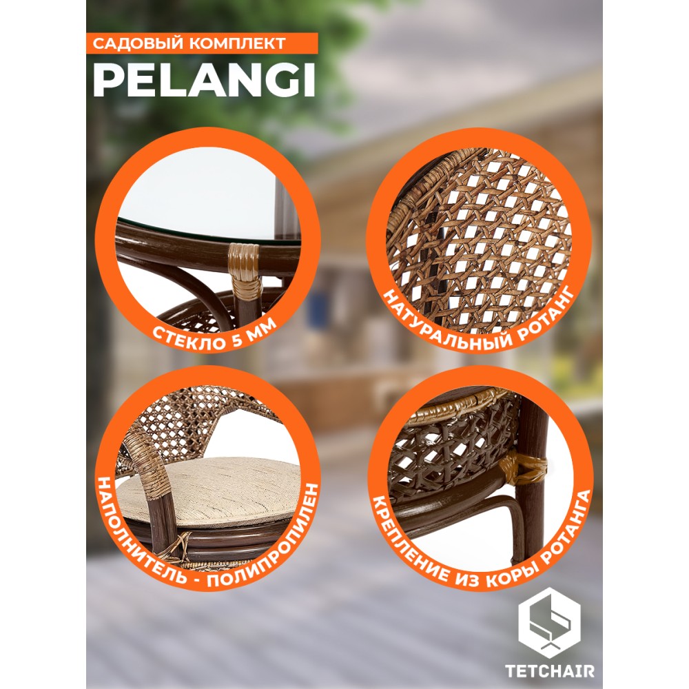 Комплект PELANGI из натурального ротанга – это произведение искусства, созданное вручную мастерами с многолетним опытом. Метод выгибания и плетения ротанга делает каждый предмет неповторимым и уникальным. Ротанг – это натуральный материал, который отличается не только прочностью и долговечностью, но и экологичностью. Он не содержит вредных веществ и прекрасно вписывается в любой интерьер. Комплект из ротанга – это идеальное решение для тех, кто ценит комфорт и уют. Он лёгкий и мобильный, его легко перемещать по комнате. Комплект поставляется в собраном виде, что значительно упрощает его транспортировку. Комплект состоит из 4 кресел без подушек и стола со стеклом .
