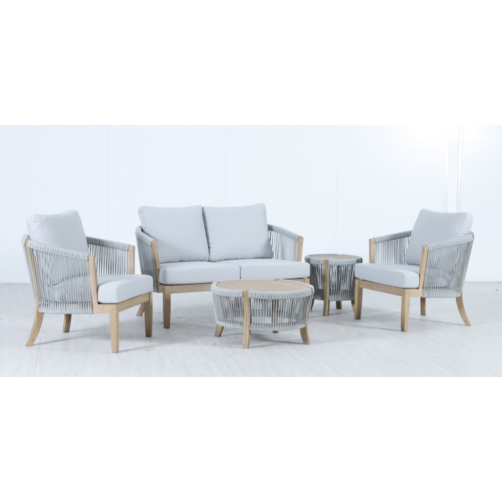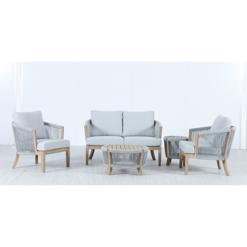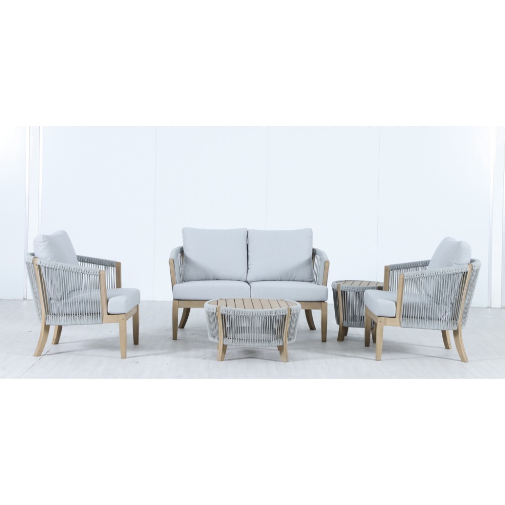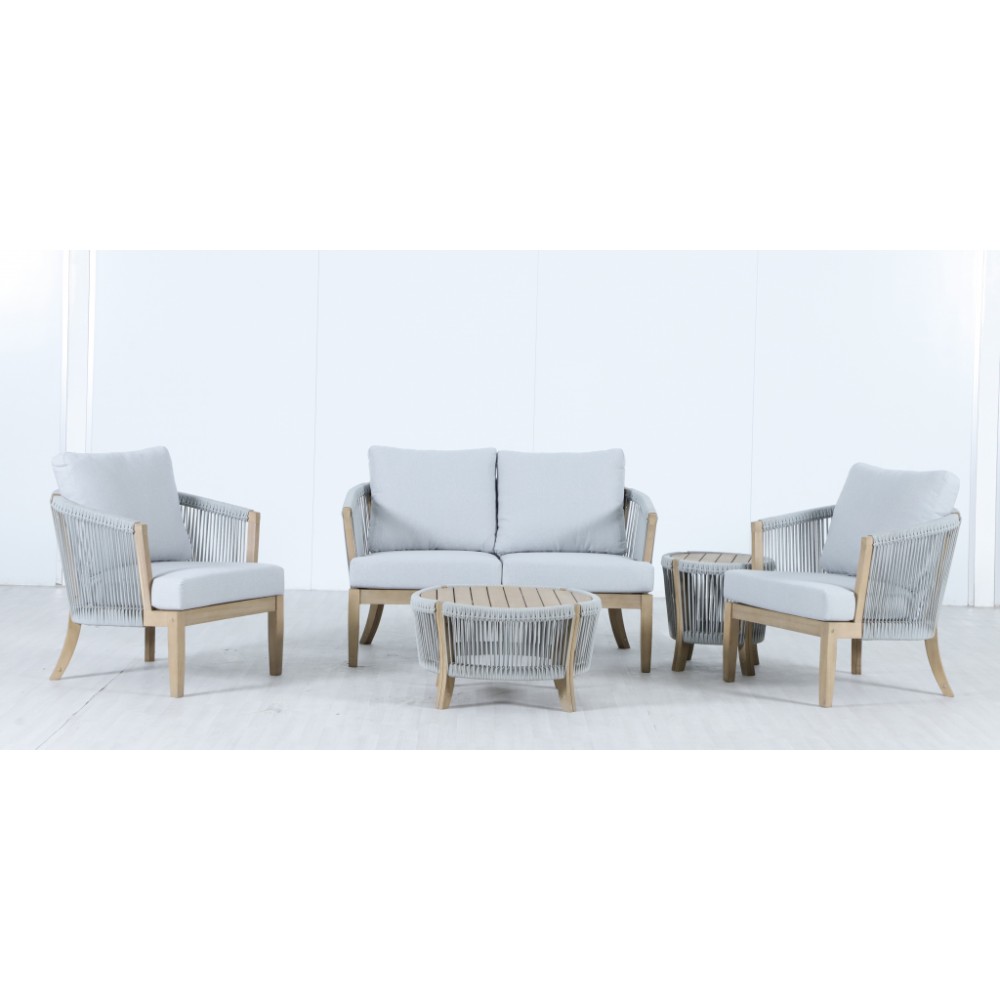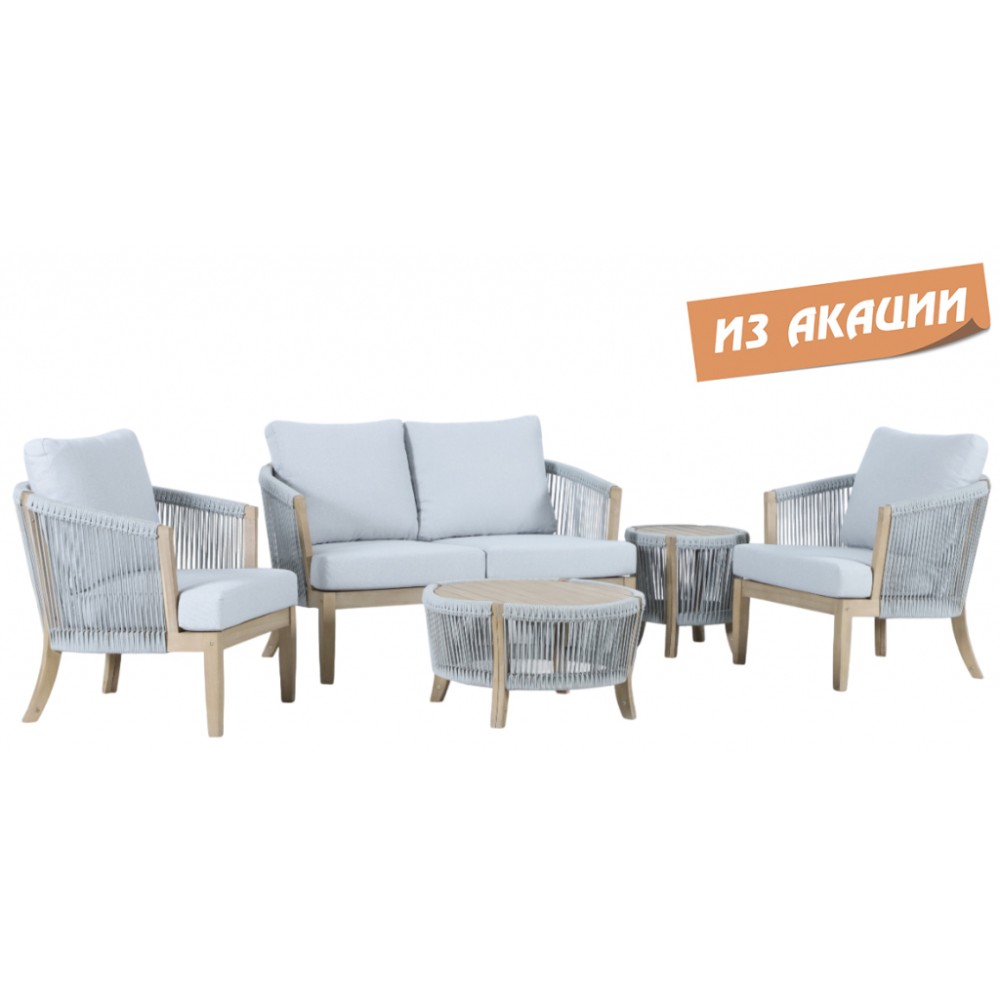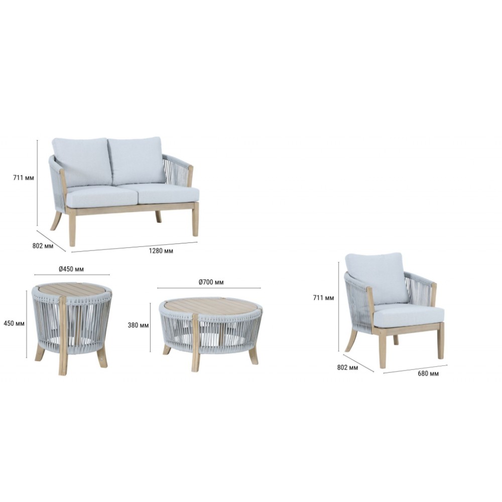 Коллекция Veneto - это линия уличной мебели из АКАЦИИ, объединяющая естественную теплоту дерева и стильные акценты из веревочного плетения роуп.Комплект для отдыха состоит из двухместного дивана, двух комфортных кресел и двух журнальныхстоликов. Veneto создаёт цельную атмосферу на террасе, веранде или в зоне у бассейна. Концепция коллекции - эстетика природных материалов, продуманная эргономика и долговечность в условиях открытого воздуха. Особенности: Материал - АКАЦИЯ, отделка экомаслом тик Light #01A. Веревочное плетение роупVPR PR325 толщиной 6 ммна спинке и подлокотниках излучает стиль в сочетании с деревянными поверхностями. Древесина, из которой изготовлена мебель, имеет сертификацию FSC (Forest Stewardship Council) - гарантия качества и происхождения древесины. Знак FSC - показатель того, что продукция происходит из леса, в котором ведется экологически и социально ответственное лесное хозяйство. Благодаря своей долговечности, прочности и устойчивости к вредителям эта древесина была создана для изготовления садовой мебели. Страна происхождения древесины: Вьетнам, Малайзия. Средняя плотность древесины: 550 кг/м³. Столешница стола выполнена из массива акации. Анодированная фурнитура из нержавеющей стали. Подушки в комплекте, ткань подушек - олефин, наполнитель - толстый поролон. Материалы устойчивы к УФ-излучению и другим погодным воздействиям. Цвет подушек: светло-серый W1920-776 легко сочетается с любыми ландшафтными решениями. Состав комплекта: Кресло лаунж с подушками, размер: 680х802х711мм - 2шт. Диван двухместный с подушками, размер: 1280х802х711мм - 1шт. Столик кофейный,размер: Ø700х380мм - 1 шт. Столик кофейный,размер: Ø450х450мм - 1 шт. Данные упаковки: Кресло лаунж: Вес нетто: 25.48 кг.Вес брутто: 34кг. Размер упаковки: 750х780х1070 мм. Объем упаковки: 0.313 м³. Количество в упаковке: 2шт. Диван двухместный: Вес нетто: 20.44 кг.Вес брутто: 28 кг. Размер упаковки: 1250х780х650 мм. Объем упаковки: 0.634 м³. Количество в упаковке: 1шт. Столик кофейный: Вес нетто: 9.08 кг.Вес брутто: 13кг. Размер упаковки: 665х665х400 мм. Объем упаковки: 0.177 м³. Количество в упаковке: 1 шт. Столик кофейный: Вес нетто: 5.74 кг.Вес брутто: 11.5кг. Размер упаковки: 520х435х340мм. Объем упаковки: 0.077 м³. Количество в упаковке: 1 шт. Открыть инструкцию по уходу. Вся деревянная мебель должна обрабатываться специальным маслом или пропиткой минимум 1 раз в 6 месяцев (в условиях высокой влажности обработку следует проводить чаще). Для данной мебели не рекомендуются резкие температурные перепады. Дерево является натуральным материалом, поэтому любые трещины, неравномерные природные рисунки, различность оттенков ‐ являются естественным процессом, который вызван температурными изменениями или влажностью.