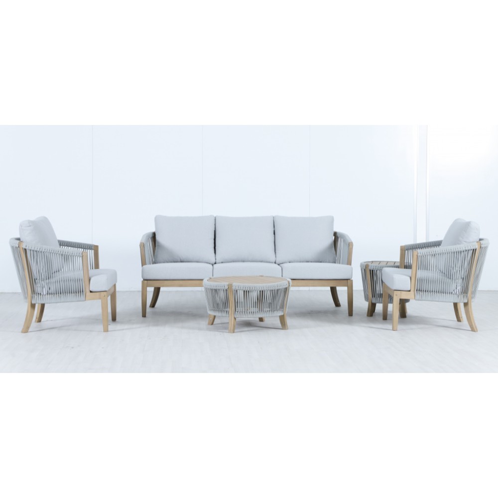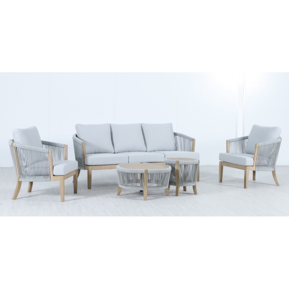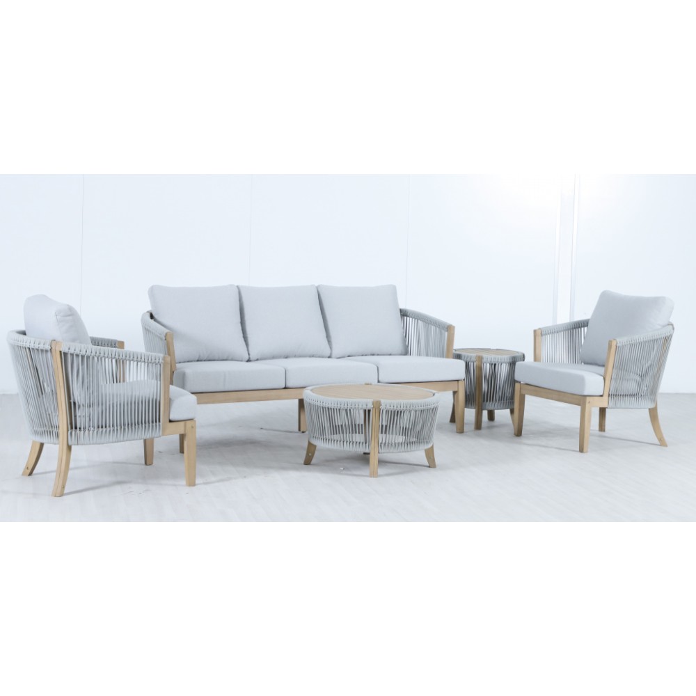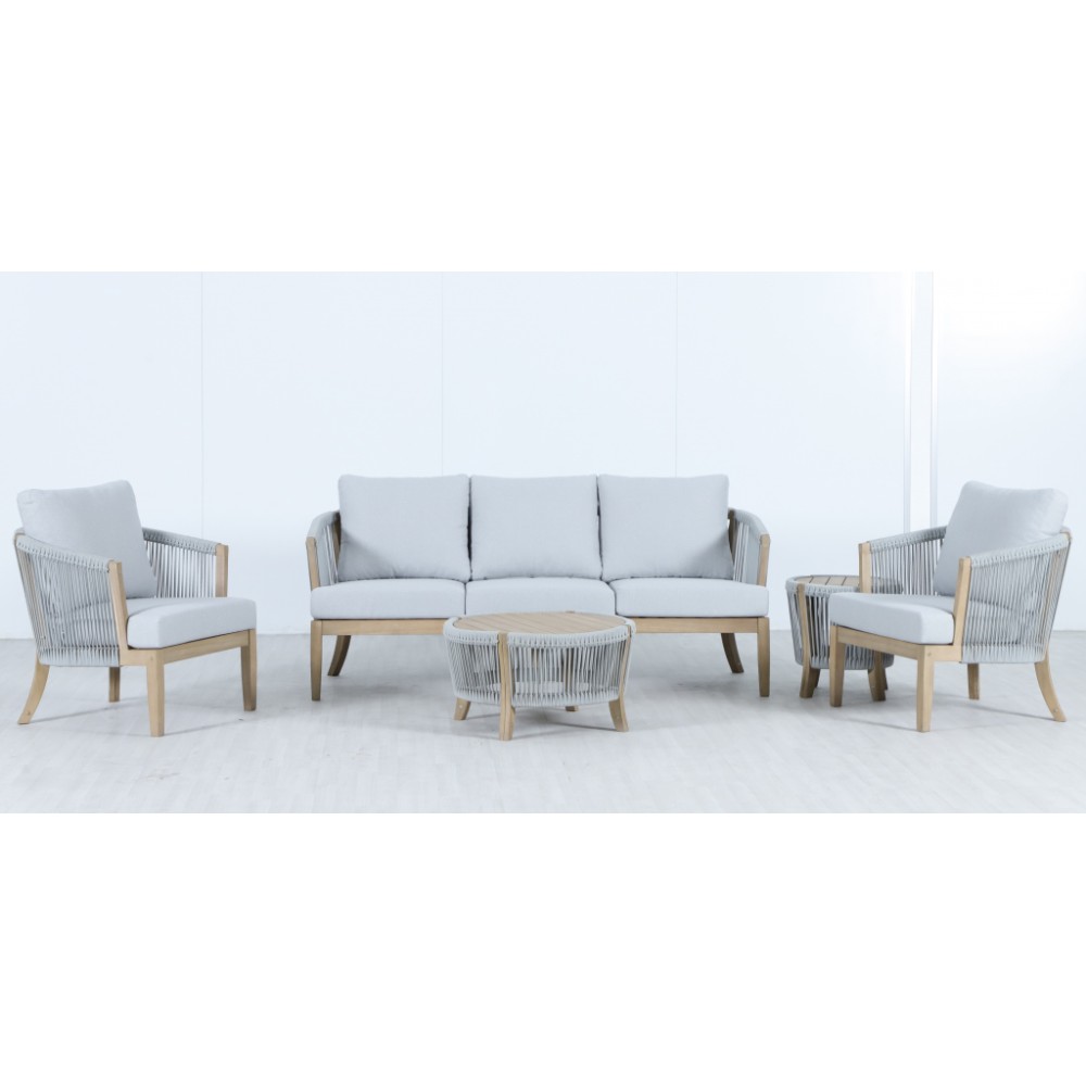 Коллекция Veneto - это линия уличной мебели из АКАЦИИ, объединяющая естественную теплоту дерева и стильные акценты из веревочного плетения роуп.Комплект для отдыха состоит из трехместного дивана, двух комфортных кресел и двух журнальныхстоликов. Veneto создаёт цельную атмосферу на террасе, веранде или в зоне у бассейна. Концепция коллекции - эстетика природных материалов, продуманная эргономика и долговечность в условиях открытого воздуха. Особенности: Материал - АКАЦИЯ, отделка экомаслом тик Light #01A. Веревочное плетение роупVPR PR325 толщиной 6 ммна спинке и подлокотниках излучает стиль в сочетании с деревянными поверхностями. Древесина, из которой изготовлена мебель, имеет сертификацию FSC (Forest Stewardship Council) - гарантия качества и происхождения древесины. Знак FSC - показатель того, что продукция происходит из леса, в котором ведется экологически и социально ответственное лесное хозяйство. Благодаря своей долговечности, прочности и устойчивости к вредителям эта древесина была создана для изготовления садовой мебели. Страна происхождения древесины: Вьетнам, Малайзия. Средняя плотность древесины: 550 кг/м³. Столешница стола выполнена из массива акации. Анодированная фурнитура из нержавеющей стали. Подушки в комплекте, ткань подушек - олефин, наполнитель - толстый поролон. Материалы устойчивы к УФ-излучению и другим погодным воздействиям. Цвет подушек: светло-серый W1920-776 легко сочетается с любыми ландшафтными решениями. Состав комплекта: Кресло лаунж с подушками, размер: 680х802х711мм - 2шт. Диван трехместный с подушками, размер: 1880х802х711мм - 1шт. Столик кофейный,размер: Ø700х380мм - 1 шт. Столик кофейный,размер: Ø450х450мм - 1 шт. Данные упаковки: Кресло лаунж: Вес нетто: 25.48 кг.Вес брутто: 34кг. Размер упаковки: 750х780х1070 мм. Объем упаковки: 0.313 м³. Количество в упаковке: 2шт. Диван трехместный: Вес нетто: 29.56кг.Вес брутто: 38.5кг. Размер упаковки: 1850х780х610 мм. Объем упаковки: 0.880 м³. Количество в упаковке: 1шт. Столик кофейный: Вес нетто: 9.08 кг.Вес брутто: 13кг. Размер упаковки: 665х665х400 мм. Объем упаковки: 0.177 м³. Количество в упаковке: 1 шт. Столик кофейный: Вес нетто: 5.74 кг.Вес брутто: 11.5кг. Размер упаковки: 520х435х340мм. Объем упаковки: 0.077 м³. Количество в упаковке: 1 шт. Открыть инструкцию по уходу. Вся деревянная мебель должна обрабатываться специальным маслом или пропиткой минимум 1 раз в 6 месяцев (в условиях высокой влажности обработку следует проводить чаще). Для данной мебели не рекомендуются резкие температурные перепады. Дерево является натуральным материалом, поэтому любые трещины, неравномерные природные рисунки, различность оттенков ‐ являются естественным процессом, который вызван температурными изменениями или влажностью.