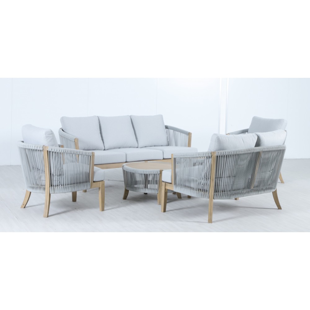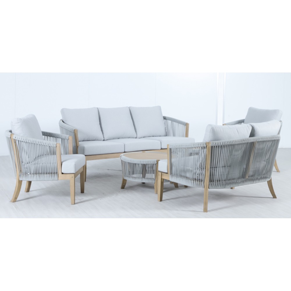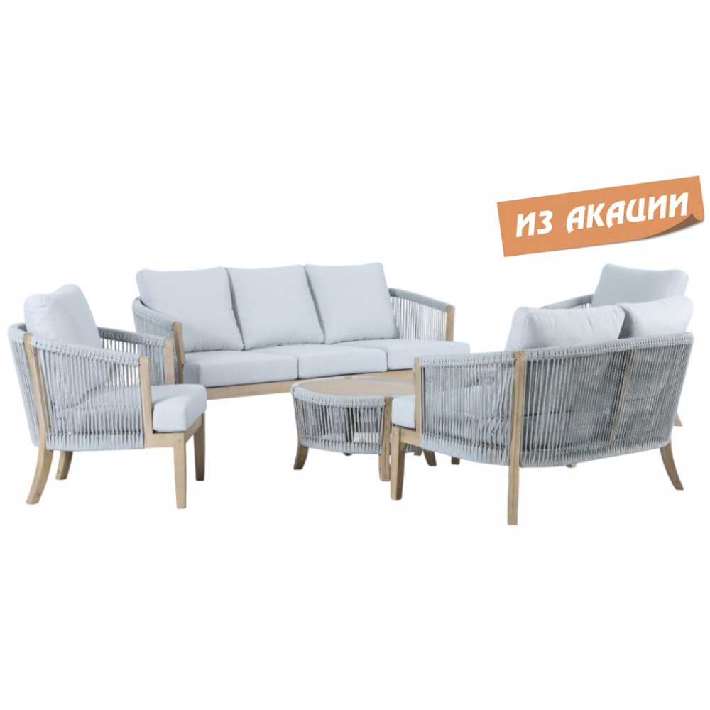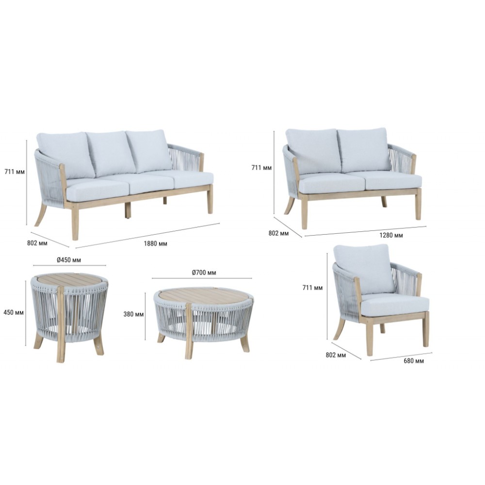 Коллекция Veneto - это линия уличной мебели из АКАЦИИ, объединяющая естественную теплоту дерева и стильные акценты из веревочного плетения роуп.Комплект для отдыха состоит из двухместного и трехместного диванов, двух комфортных кресел, двух журнальныхстоликов. Veneto создаёт цельную атмосферу на террасе, веранде или в зоне у бассейна. Концепция коллекции - эстетика природных материалов, продуманная эргономика и долговечность в условиях открытого воздуха. Особенности: Материал - АКАЦИЯ, отделка экомаслом тик Light #01A. Веревочное плетение роупVPR PR325 толщиной 6 ммна спинке и подлокотниках излучает стиль в сочетании с деревянными поверхностями. Древесина, из которой изготовлена мебель, имеет сертификацию FSC (Forest Stewardship Council) - гарантия качества и происхождения древесины. Знак FSC - показатель того, что продукция происходит из леса, в котором ведется экологически и социально ответственное лесное хозяйство. Благодаря своей долговечности, прочности и устойчивости к вредителям эта древесина была создана для изготовления садовой мебели. Страна происхождения древесины: Вьетнам, Малайзия. Средняя плотность древесины: 550 кг/м³. Столешница стола выполнена из массива акации. Анодированная фурнитура из нержавеющей стали. Подушки в комплекте, ткань подушек - олефин, наполнитель - толстый поролон. Материалы устойчивы к УФ-излучению и другим погодным воздействиям. Цвет подушек:светло-серый W1920-776 легко сочетается с любыми ландшафтными решениями. Состав комплекта: Кресло лаунж с подушками, размер: 680х802х711мм - 2шт. Диван двухместный с подушками, размер: 1280х802х711мм - 1шт. Диван трехместный с подушками, размер: 1880х802х711мм - 1шт. Столик кофейный,размер: Ø700х380мм - 1 шт. Столик кофейный,размер: Ø450х450мм - 1 шт. Данные упаковки: Кресло лаунж: Вес нетто: 25.48 кг.Вес брутто: 34кг. Размер упаковки: 750х780х1070 мм. Объем упаковки: 0.313 м³. Количество в упаковке: 2шт. Диван двухместный: Вес нетто: 20.44 кг.Вес брутто: 28 кг. Размер упаковки: 1250х780х650 мм. Объем упаковки: 0.634 м³. Количество в упаковке: 1шт. Диван трехместный: Вес нетто: 29.56кг.Вес брутто: 38.5кг. Размер упаковки: 1850х780х610 мм. Объем упаковки: 0.880 м³. Количество в упаковке: 1шт. Столик кофейный: Вес нетто: 9.08 кг.Вес брутто: 13кг. Размер упаковки: 665х665х400 мм. Объем упаковки: 0.177 м³. Количество в упаковке: 1 шт. Столик кофейный: Вес нетто: 5.74 кг.Вес брутто: 11.5кг. Размер упаковки: 520х435х340мм. Объем упаковки: 0.077 м³. Количество в упаковке: 1 шт. Открыть инструкцию по уходу. Вся деревянная мебель должна обрабатываться специальным маслом или пропиткой минимум 1 раз в 6 месяцев (в условиях высокой влажности обработку следует проводить чаще). Для данной мебели не рекомендуются резкие температурные перепады. Дерево является натуральным материалом, поэтому любые трещины, неравномерные природные рисунки, различность оттенков ‐ являются естественным процессом, который вызван температурными изменениями или влажностью.