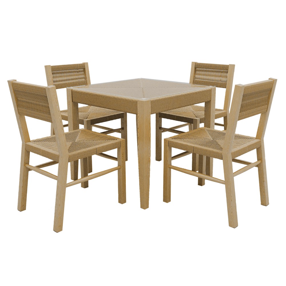Квадратный обеденный стол, со столешницей из закаленного стекла 6 мм - 1 штСтул - 4 шт