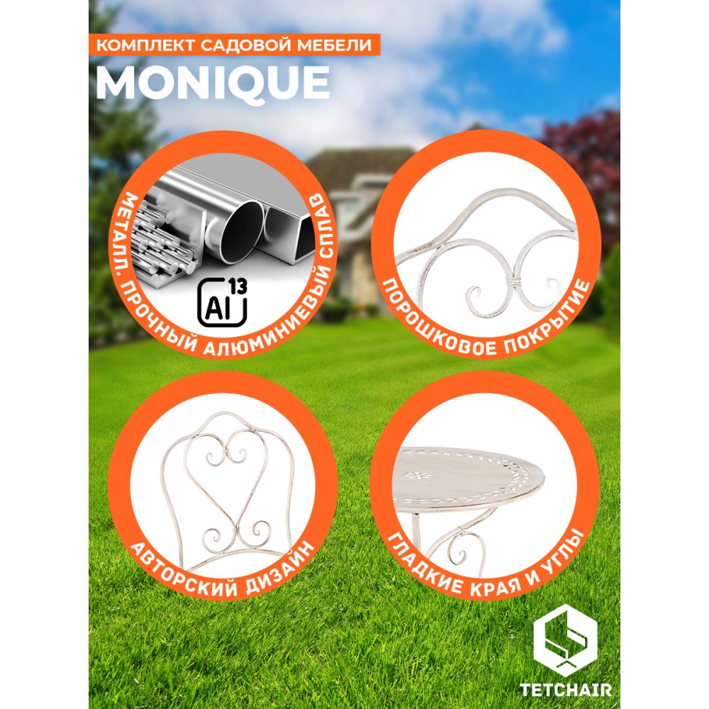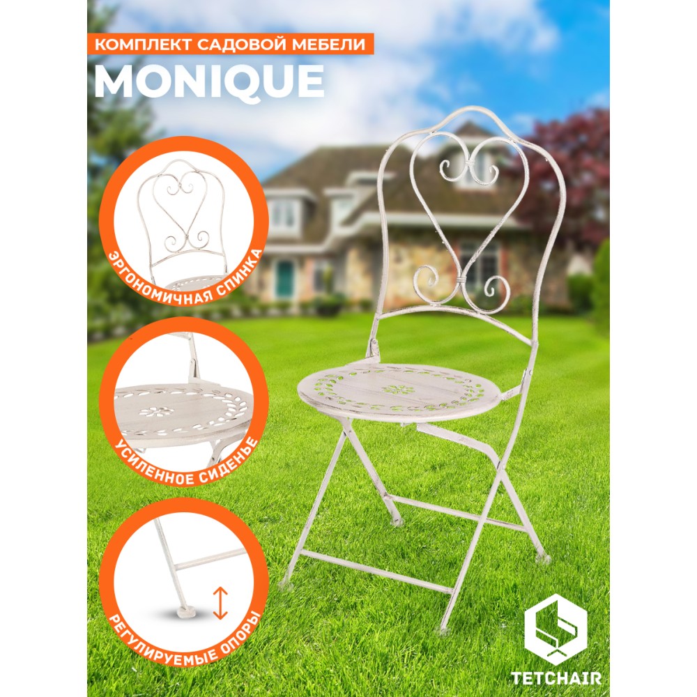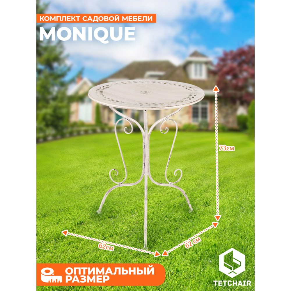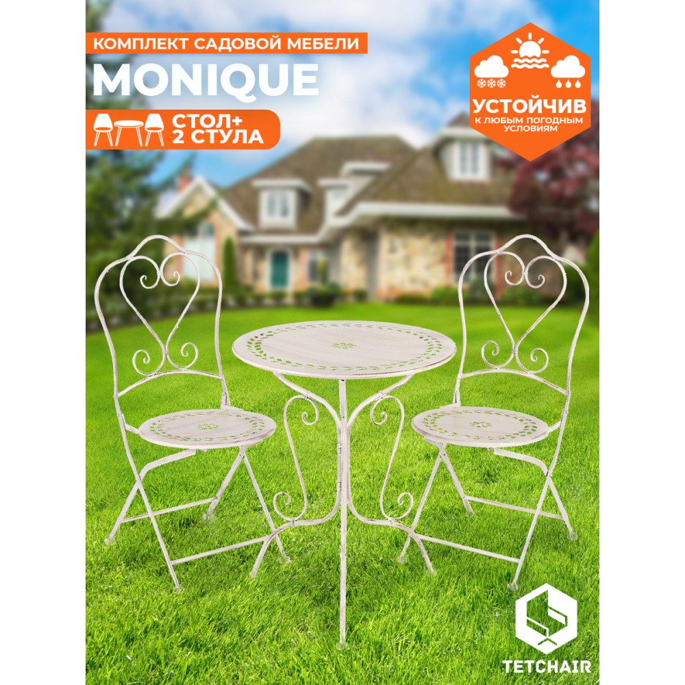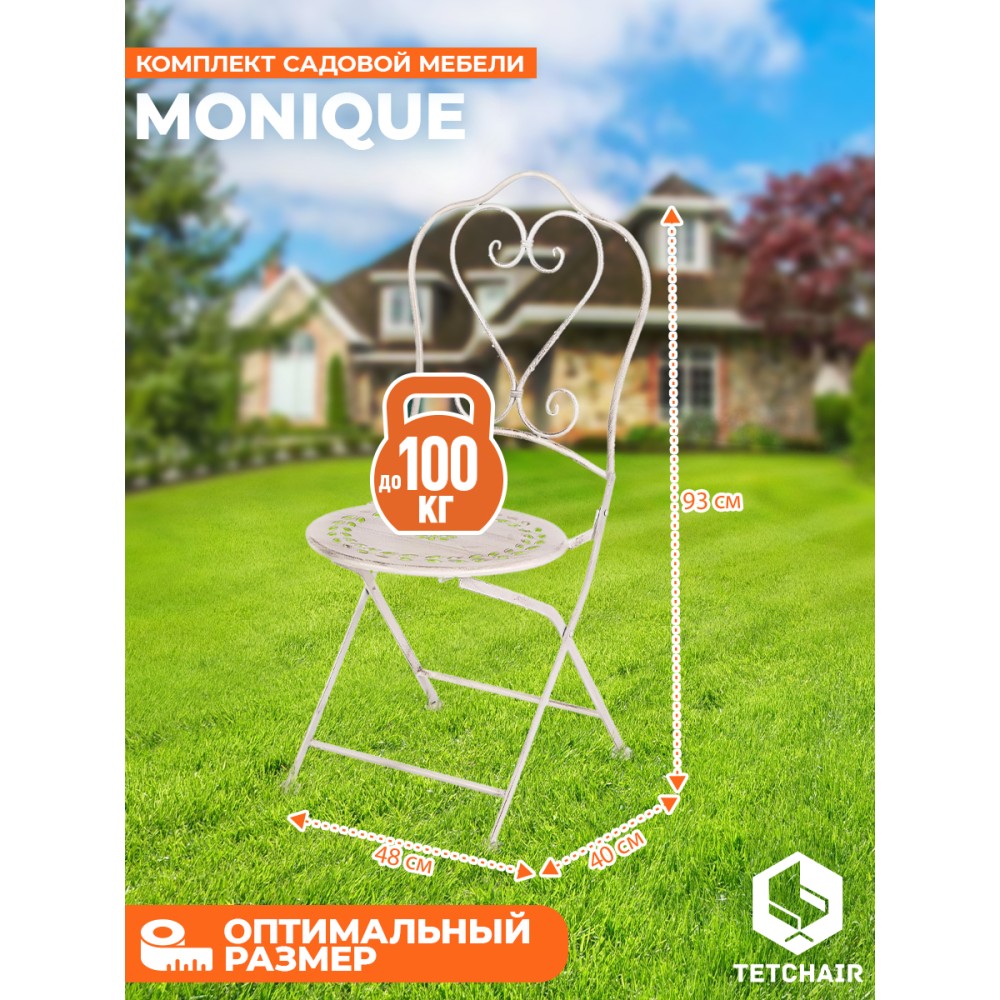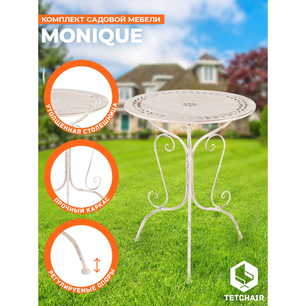 Изящный комплект кованой мебели Secret De Maison MONIQUE, состоящий из стола и двух складных стульев, будет прекрасно смотреться в тенистом уголке сада, на веранде кафе, отлично подойдёт для отдыха на приусадебной лужайке. Изысканные кованые узоры в сочетании с каркасом из стального сплава с напылением краски подчеркивают визуальную легкость и красоту комплекта. Небольшие потертости и признаки старины придают ему неповторимый шарм и обаяние. Стулья легко складываются и раскладываются, не занимают много места при хранении. Высокая прочность каркаса, устойчивость к любым погодным условиям, способность выдерживать большие нагрузки и простота в уходе выгодно выделяют стол и стулья MONIQUE среди садовой мебели. Комплект прекрасно сочетается с мебелью из коллекции BEAUJOLAIS. Стол поставляется в разобранном виде.