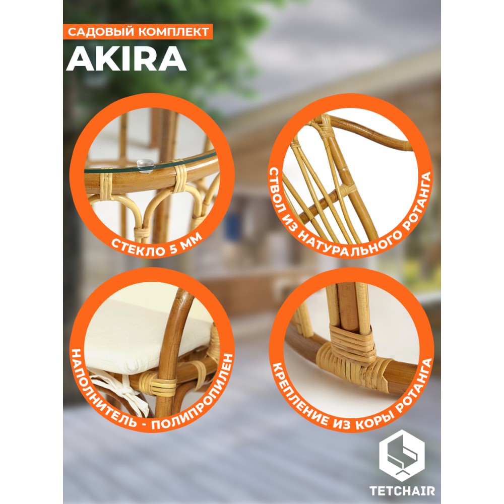 Комплект для отдыха «Akira» является эксклюзивным и неповторимым, так как его делают вручную методом выгибания и плетения.Не сомневайтесь в его надёжности и долговечности, ведь он изготовлен из гибкого и прочного ротанга, который может выдержать огромный вес, являясь при этом фантастически лёгким.