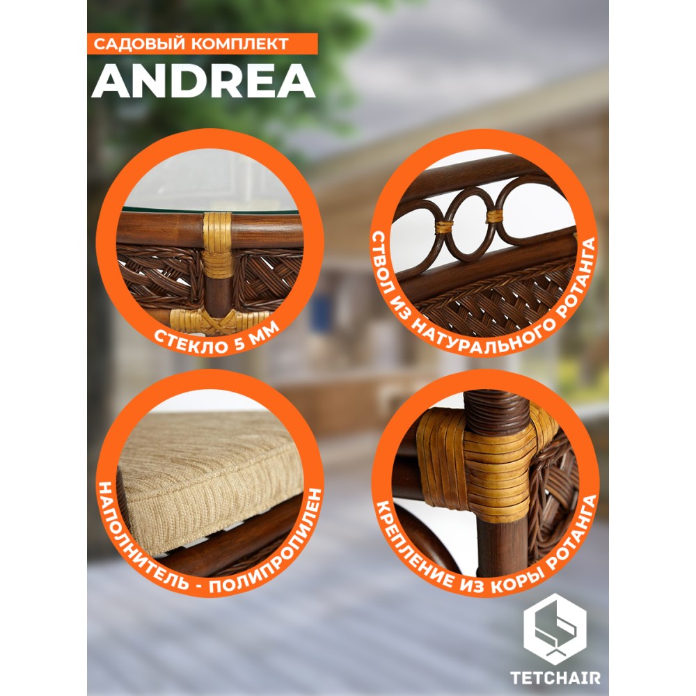 Изумительный террасный комплект мебели Secret De Maison из коллекции ANDREA, состоящий из столика и двух кресел, будет прекрасно смотреться в загородном доме, на дачной веранде, отлично подойдёт для отдыха на приусадебном участке. Уникальные плетеные узоры из натурального ротанга, выполненные вручную с использованием нескольких видов традиционного индонезийского плетения, добавят ноты изысканности и индивидуальности в ваш интерьер. Небольшой столик со столешницей из закаленного стекла, дополненный миниатюрной нижней полочкой, практичен и элегантен. Стекло обладает повышенной прочностью, долговечностью, способно многие годы не утрачивать своей первоначальной привлекательности. Два эргономичных кресла с мягкими подушками позволят удобно расположиться для комфортного отдыха. Тканевая обивка подушек проста в уходе, прослужит вам долгие годы, сохраняя свой первоначальный вид. Эта прочная и практичная мебель покрыта прозрачным матовым лаком, устойчивым к УФ-излучению, способна выдержать большие нагрузки, устойчива к повышенной влажности и долгие годы сохранит свой презентабельный вид. Комплект идеально сочетается с мебелью из коллекции ANDREA, поставляется в собранном виде.