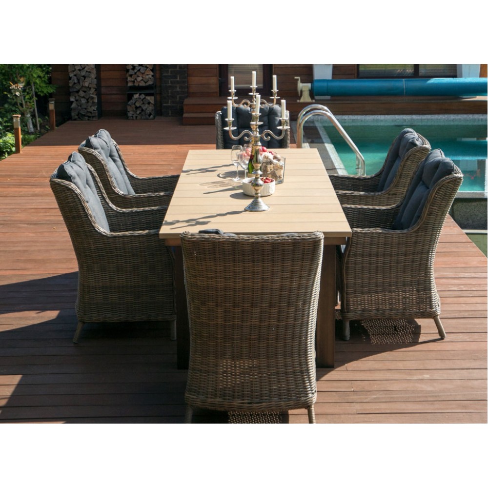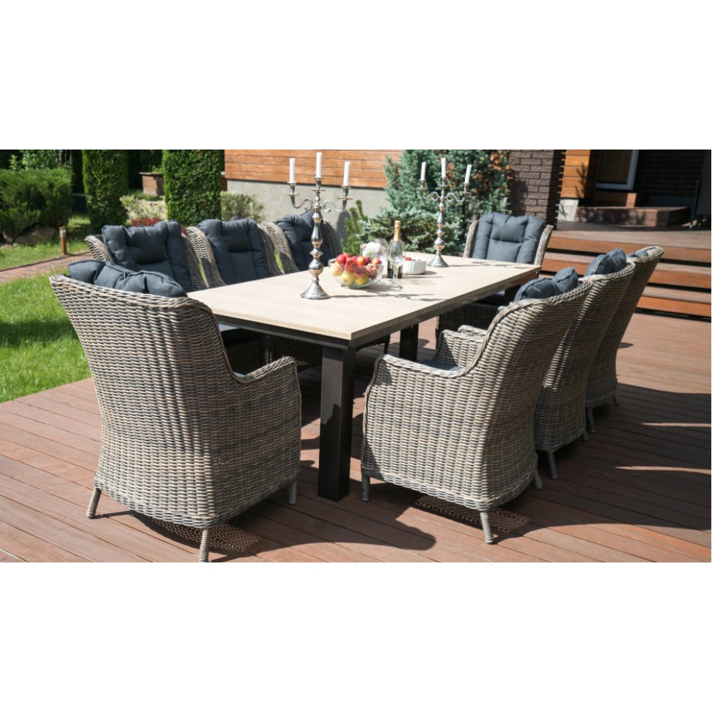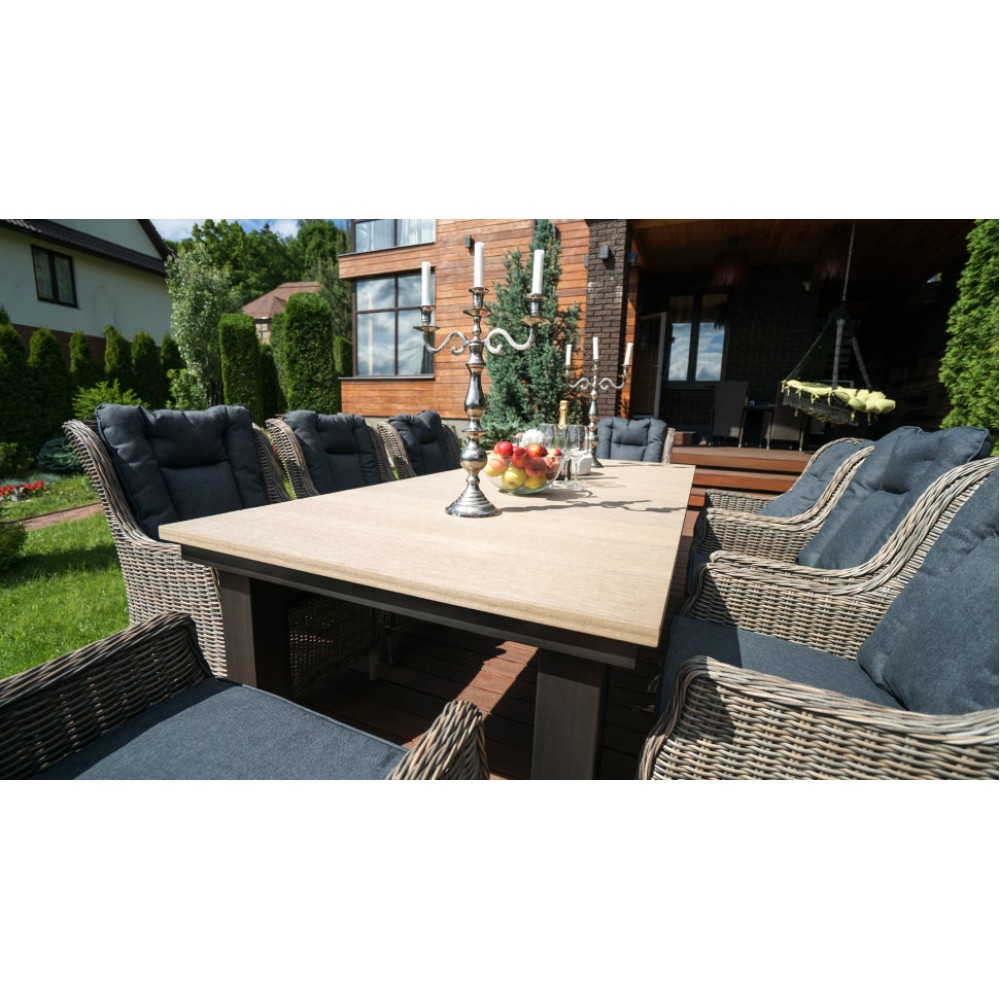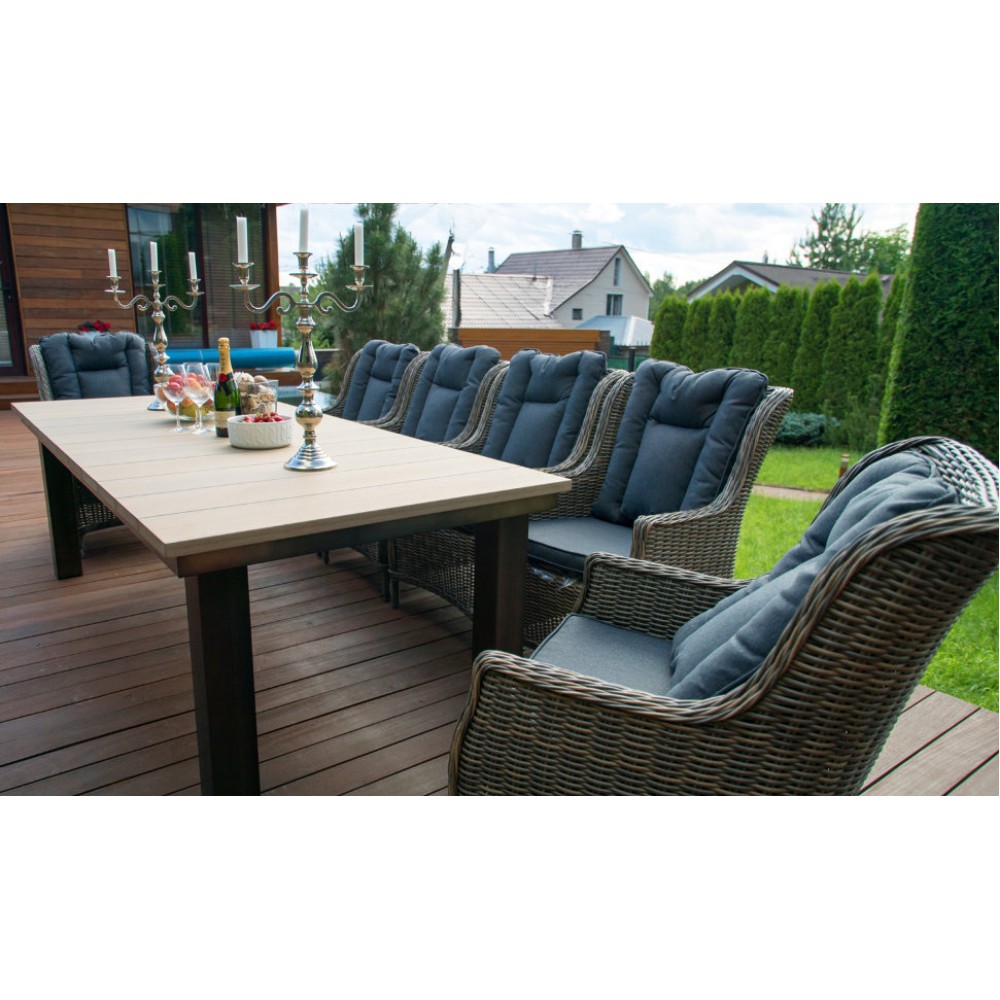 кресло: 53*52*110 см; Вес 14,5 кг; стол:100*77 см, столешница 3 см, вес 120 кг