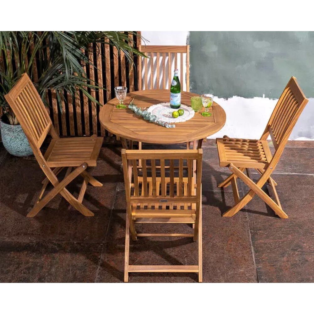Классический и эргономичный ансамбль для организации уютной обеденной зоны, воплощающий эстетику традиционного дизайна и безграничные возможности комфорта. Обеденная группа ОКСФОРД S объединяет компактный круглый складной стол и четыре эргономичных складных стула из массива акации, создавая идеальное решение для тех, кто ценит функциональность, долговечность и атмосферу неспешных семейных трапез на террасе, в саду или на даче.