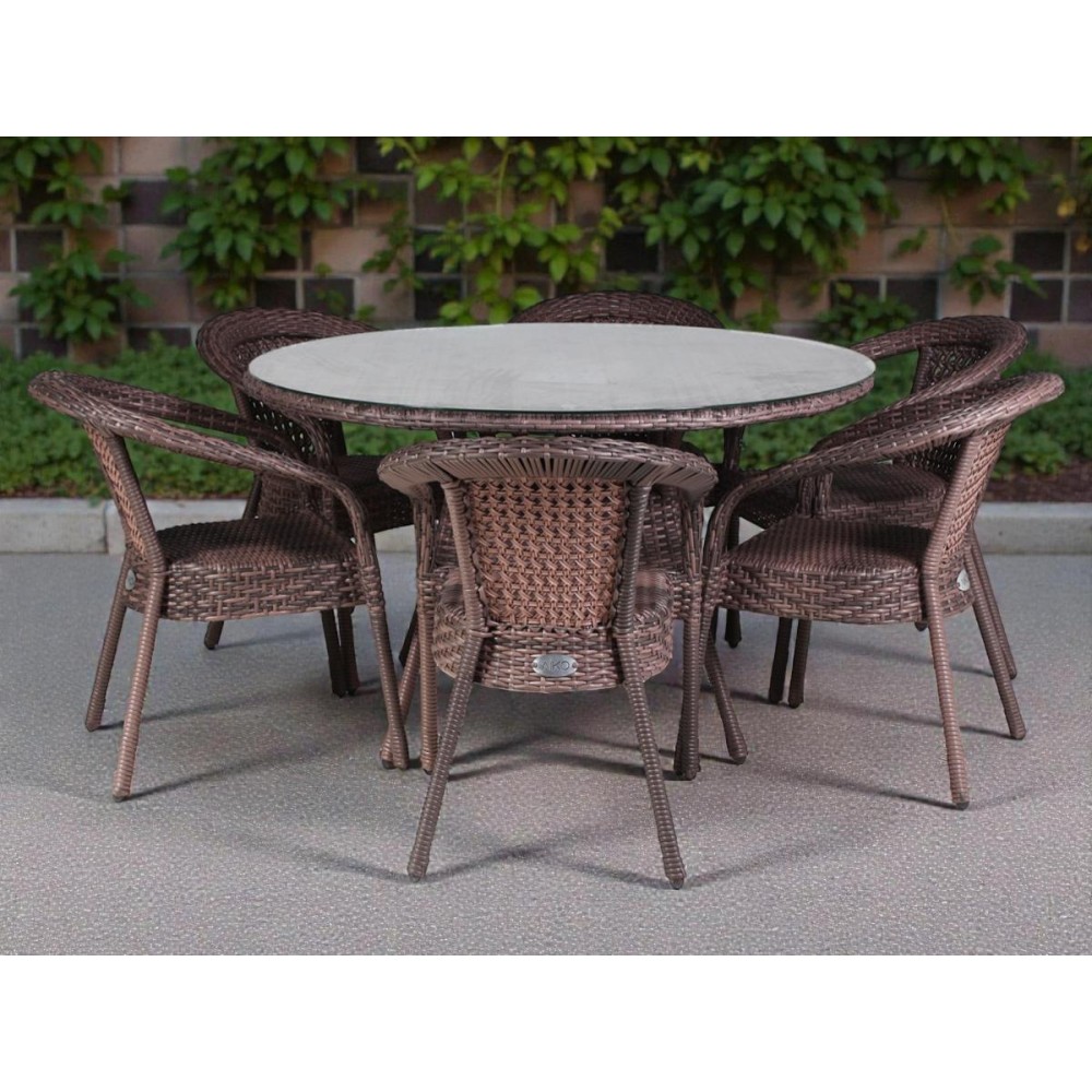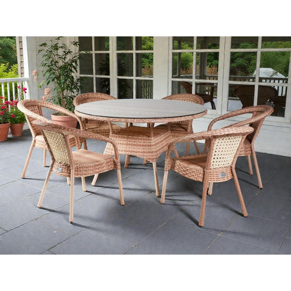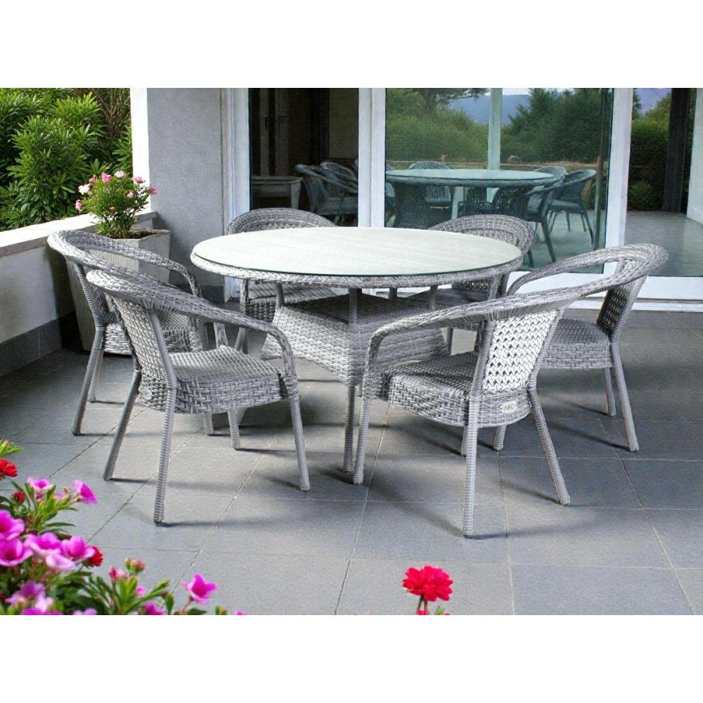 DECO 6 — это просторный комплект мебели премиум-класса, включающий круглый обеденный стол диаметром 130 см и 6 стильных кресел. Идеальное решение для тех, кто любит принимать гостей и ценит комфорт. Готовый комплект с плетением из плоской нити и столешницей из закаленного стекла создаст идеальную зону для обедов на вашей террасе или веранде.