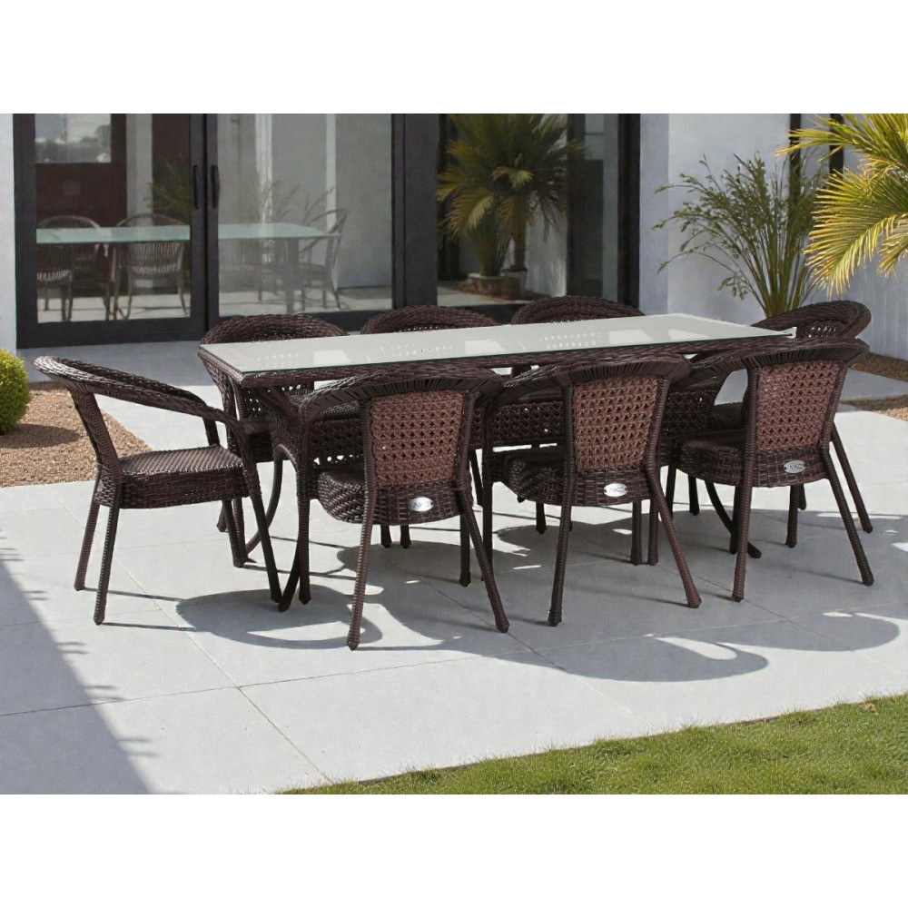 DECO 8 — это вместительный комплект мебели премиум-класса, включающий просторный прямоугольный стол 180×90 см и 8 стильных кресел. Идеальное решение для больших семей, дружеских встреч и торжественных мероприятий. Готовый комплект в благородном оттенке шоколада с плетением из плоской нити и столешницей из закаленного стекла создаст идеальную обеденную зону на вашей террасе, веранде или в саду.