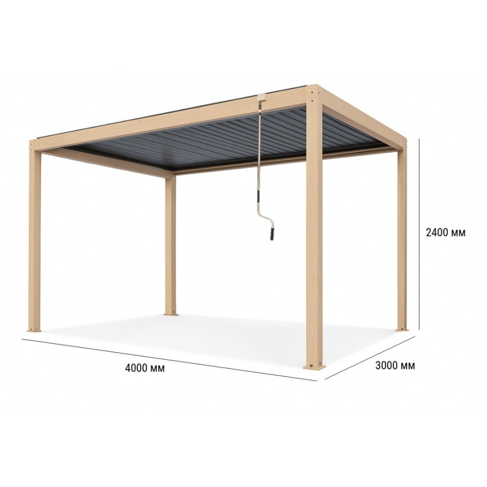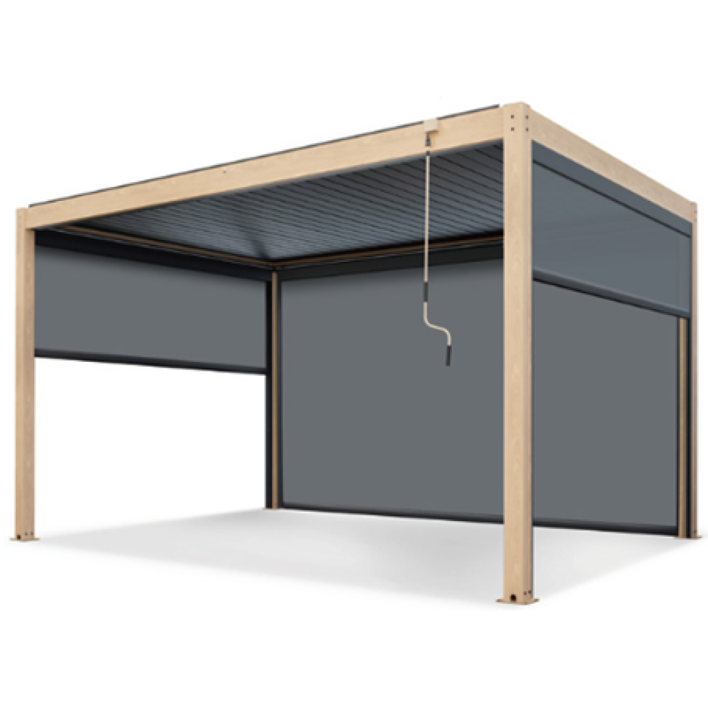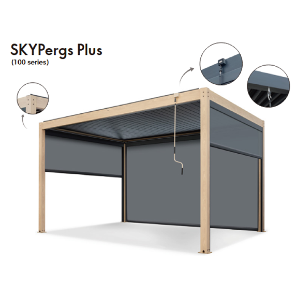 Оцените простоту дизайна алюминиевой перголыSKYPergs Plus с порошковым покрытием. Усиленная крыша выдерживает до 100 кг/м² снега, а регулируемая конструкция с жалюзи обеспечивает комфорт круглый год и в любую погоду. Водонепроницаемая конструкция обеспечивает эффективный дренаж для долговечности в любую погоду. Алюминиевые верхние жалюзи срегулировкой угла наклона управляются с помощью ручной рукоятки, позволяя без усилий контролировать уровень освещенности и тени. Линейный, минималистичный профиль перголы гармонично вписывается в современные архитектурные решения, подчеркивая стиль любого outdoor-пространства. Встроенная разноцветная LED-подсветка создает уютную атмосферу в вечернее время, превращая террасу, патио или зону отдыха в многофункциональное пространство для любого времени суток. Дополнительные опции - раздвижные стеклянные панели, боковые шторы, жалюзи и экраны - обеспечивают защиту от ветра, дождя и посторонних взглядов, гарантируя комфорт и приватность в любую погоду. Особенности: Материал: окрашенный алюминиевый сплав: 6063-T5. Это универсальный материал с превосходной поверхностью и достойной прочностью, разумный выбор для архитектурных и легких конструкционных применений, особенно когда важны эстетика и коррозионная стойкость. Цвет: Fresh Teak (эффект "под дерево"). Двойные алюминиевые жалюзи с порошковым покрытием. Разноцветная LED-подсветка (7 цветов). Стойка: 100х100х1.5 мм. Основная балка: 150х62х1.5 мм. Желоб: 58х56х1.3 мм. Жалюзи: 130х30х1.3 мм (двойные). Управление: ручное, с помощью рукоятки длиной 1,5 м. Для уточнения всех возможных вариантов материала и цвета данного изделия обращайтесь к нашим менеджерам.