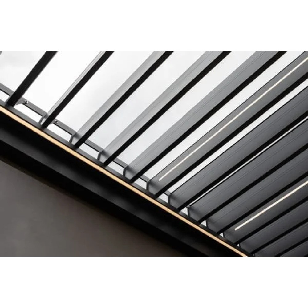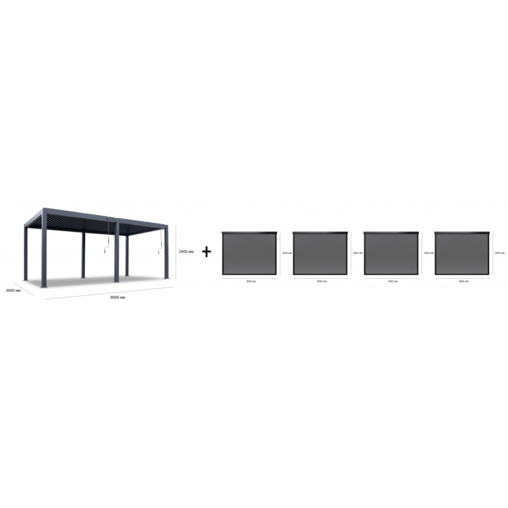 ПерголаAstrol Pergola размером 3x6 м оснащена внешней рукояткой и многоцветными светодиодами. Алюминиевые верхние жалюзи срегулировкой угла наклона управляются с помощью двух ручных рукояток, позволяя без усилий контролировать уровень освещенности и тени. Линейный, минималистичный профиль перголы гармонично вписывается в современные архитектурные решения, подчеркивая стиль любого outdoor-пространства. Встроенная разноцветная LED-подсветка создает уютную атмосферу в вечернее время, превращая террасу, патио или зону отдыха в многофункциональное пространство для любого времени суток. Дополнительные опции - раздвижные стеклянные панели, боковые шторы, жалюзи и экраны - обеспечивают защиту от ветра, дождя и посторонних взглядов, гарантируя комфорт и приватность в любую погоду. Состав комплекта: Пергола металлическая 3х6 м +LED-подсветка, размер:3000х6000х2400 мм - 1 шт. Экран текстиленовый3 м, размер:2622х2242 мм - 4 шт. Особенности перголы: Материал: окрашенный алюминиевый сплав: 6063-T5. Это универсальный материал с превосходной поверхностью и достойной прочностью, разумный выбор для архитектурных и легких конструкционных применений, особенно когда важны эстетика и коррозионная стойкость. Цвет: RAL 7016 темно-серый. Одинарные алюминиевые жалюзи с порошковым покрытием. Размер:124х35х1.5мм. Разноцветная LED-подсветка (7 цветов). Стойка: 125х125х1.8 мм. Основная балка: 150х62х1.5 мм. Желоб: 58х56х1.3 мм. Управление: ручное, с помощью двух рукояток. Особенности экранов: Полузатеняющие. Застежка-молния. Текстилен (78% ПВХ и 22% полиэстера). Цвет алюминия: порошковое покрытие темно-серого цвета. Для уточнения всех возможных вариантов материала и цвета данного изделия обращайтесь к нашим менеджерам.