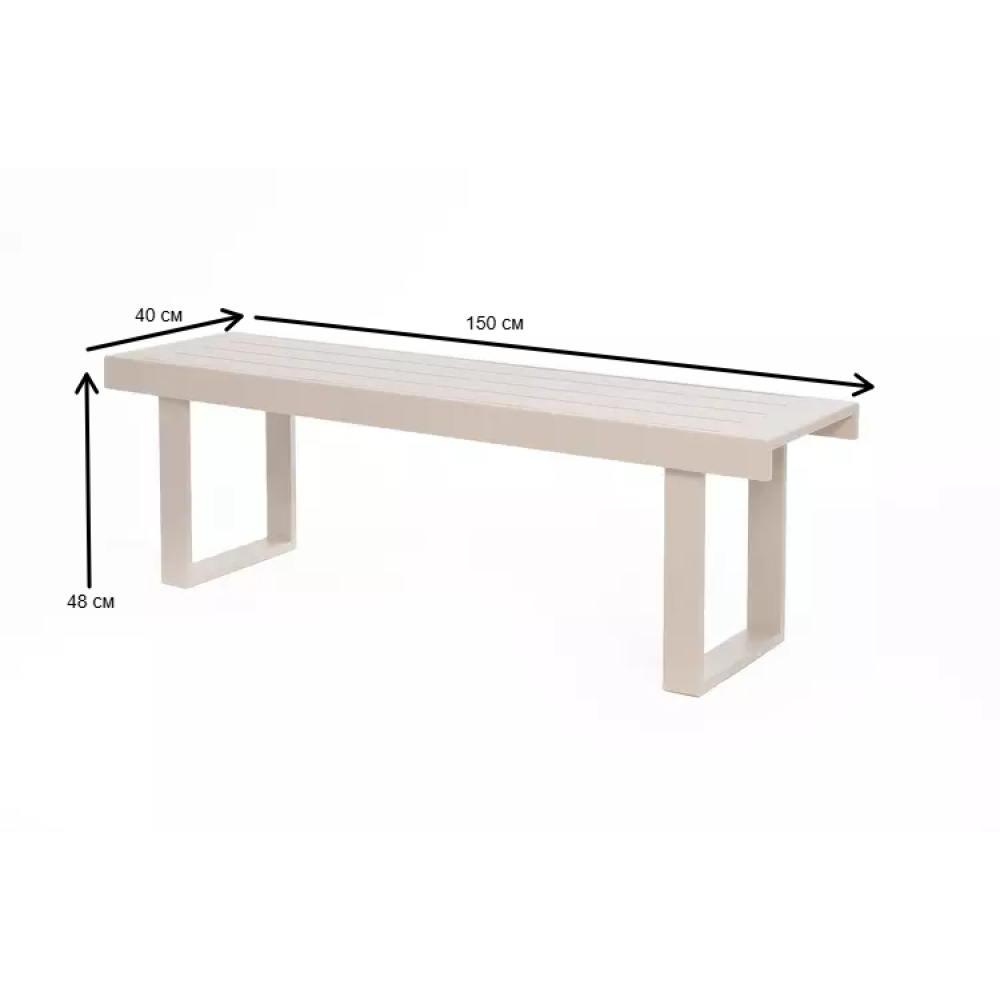 Современный и функциональный элемент для организации стильной обеденной зоны, воплощающий эстетику минимализма и безграничные возможности комфорта. Скамья ГОНЗО выполнена из прочного алюминиевого каркаса с порошковым покрытием в нежном бежевом оттенке и дополнена сиденьем из текстилена, создавая идеальное решение для тех, кто ценит функциональность, долговечность и атмосферу неспешных семейных трапез на террасе, в саду или на даче.