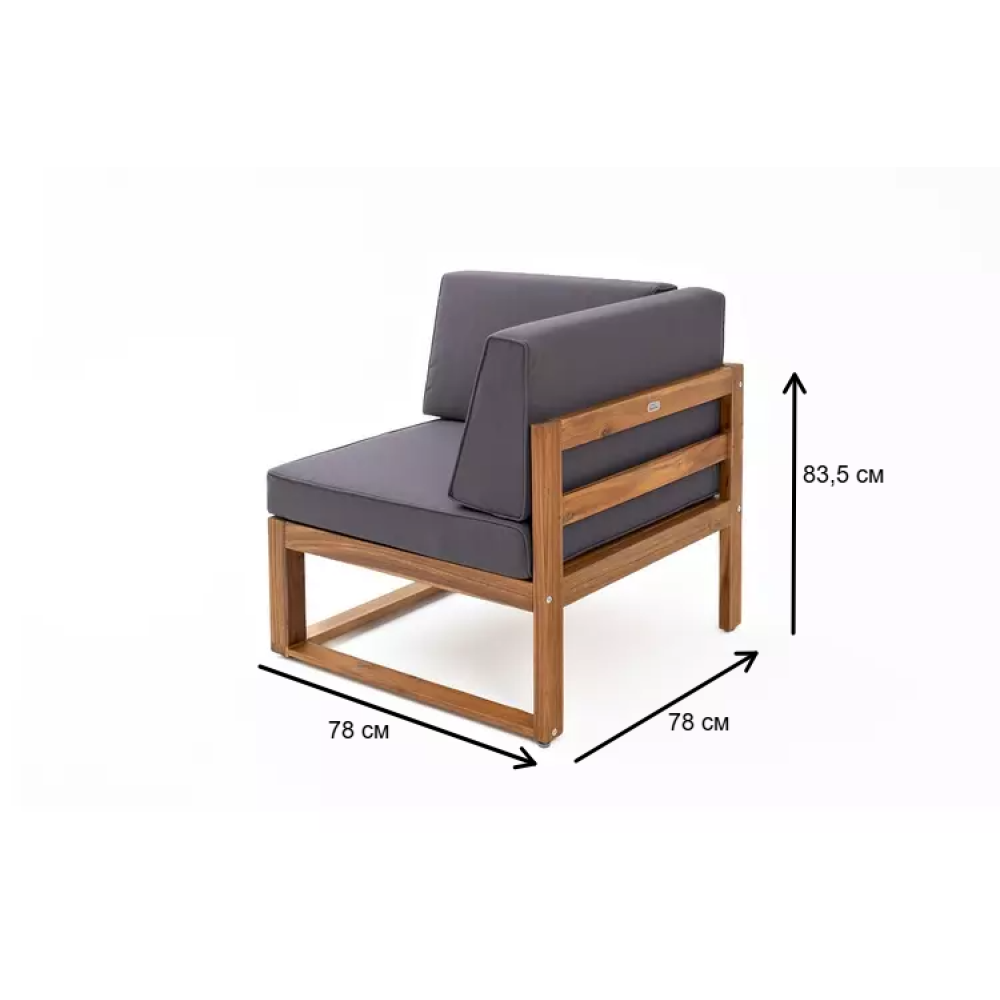 Ключевой элемент для создания нестандартных и уютных лаунж-зон, воплощающий сдержанную элегантность коллекции. Угловая софа БУКА выполнена из массива акации с теплой натуральной отделкой и дополнена мягкими подушками цвета «темно-серый графит», позволяя изящно соединять прямые секции и формировать замкнутые пространства для отдыха любой конфигурации.