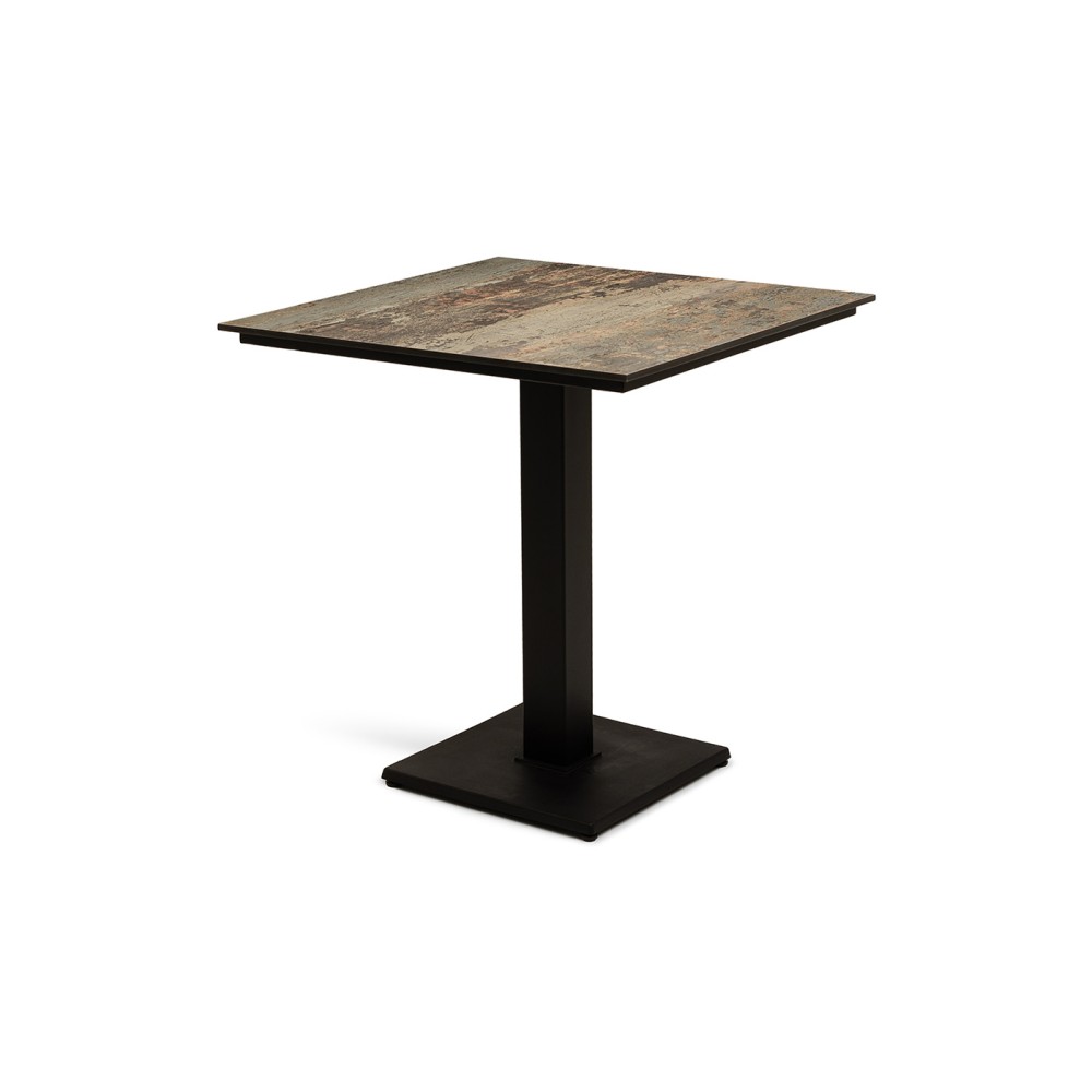 Квадратный интерьерный стол «Каффе» для двоих персон. Столешница выполнена из современного полимерного компакт-пластиком HPL, толщиной 12 мм. Этот материал устойчив к высоким температурам (можно ставить горячую посуду), пролитой жидкости, не требует специального ухода. Подстолье изготовлено из чугуна, благодаря чему столик очень устойчив на любых поверхностях.
