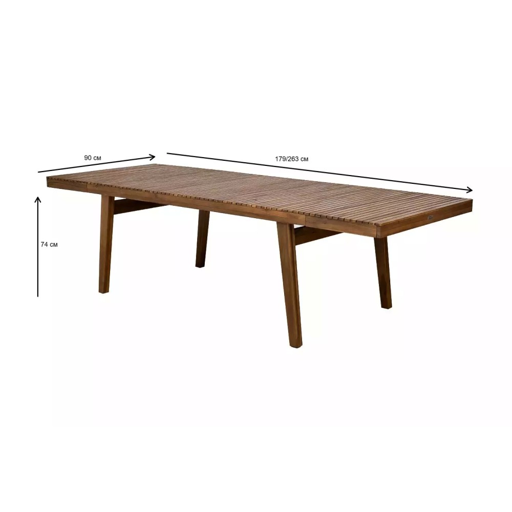 Особенности конструкции: Скандинавский минимализм, раздвижной механизм для увеличения длины с 179 до 263 см, эргономичная высота стола (74 см) для комфортной посадки, вместительная прямоугольная столешница