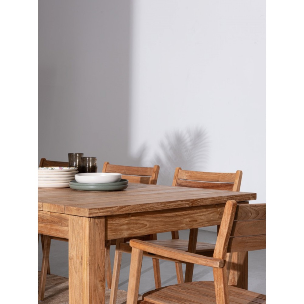 Минимальный заказ данной модели 1 шт. Данное изделие предназначено только для домашнего использования. Раздвижной обеденный стол Zorritos- это сочетание природной красоты и экологической ответственности.Его столешница и ножки изготовлены из переработанного тика. Рустикальная отделка подчеркивает уникальность текстуры древесины.Штифты из различных пород дерева, используемые в столешнице, придают ей еще большую индивидуальность. Особенности: Основаниеи столешница изготовлены из переработанного тика, сертифицированного SVLK. Отделка в рустикальном стиле, матовый лак на водной основе. Стол оснащен двумя внешними удлинителями по 400 мм(расширяются в единое решение на 800 мм) с местом для хранения под столешницей. Раздвижные направляющие из алюминия. Шурупы из нержавеющей стали гарантируют надежность конструкции. Подлежит сборке. Для уточнения всех возможных вариантов материала и цвета данного изделия обращайтесь к нашим менеджерам.