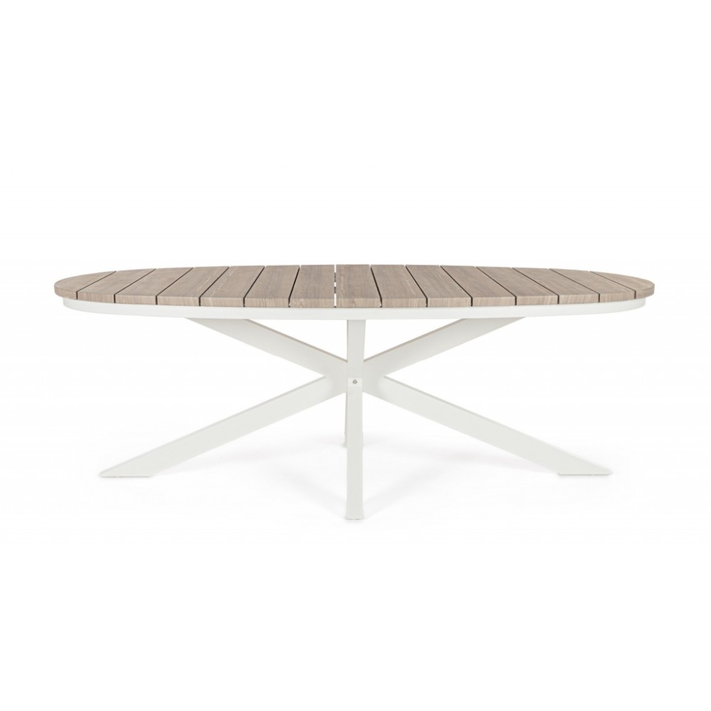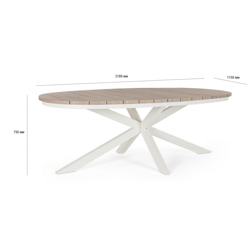 Минимальный заказ данной модели 1 шт. Данное изделие предназначено только для домашнего использования. Обеденный стол Zelmar сочетает в себе элегантный дизайн и практичность. Благодаря своей овальной форме, стол идеально подходит для создания комфортной обстановки для общения и проведения приятных вечеров в кругу семьи и друзей. Особенности: Основание изготовлено из алюминия спорошковым покрытием (полиэстер), которое защищает каркас от коррозии и повреждений. Столешница с верхними планками с эффектом деревасоздает стильный и уютный вид, идеально вписываясь в различные интерьеры. Регулируемые ножки позволяют выровнять стол на любой поверхности, обеспечивая его устойчивость. Винты из нержавеющей стали гарантируют надежность конструкции. Открыть инструкцию по использованию и уходу.